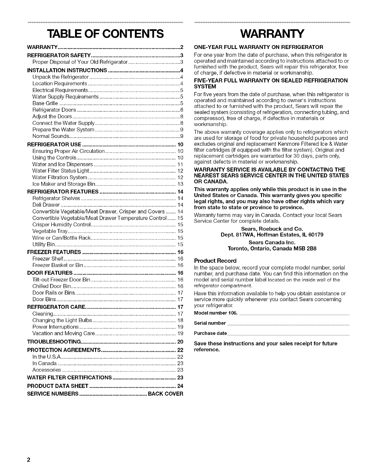 Kenmore 10654582400 User Manual REFRIGERATOR Manuals And Guides L0523172