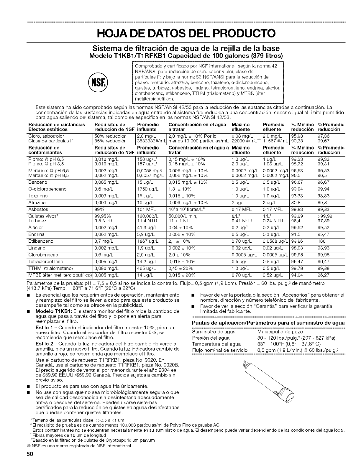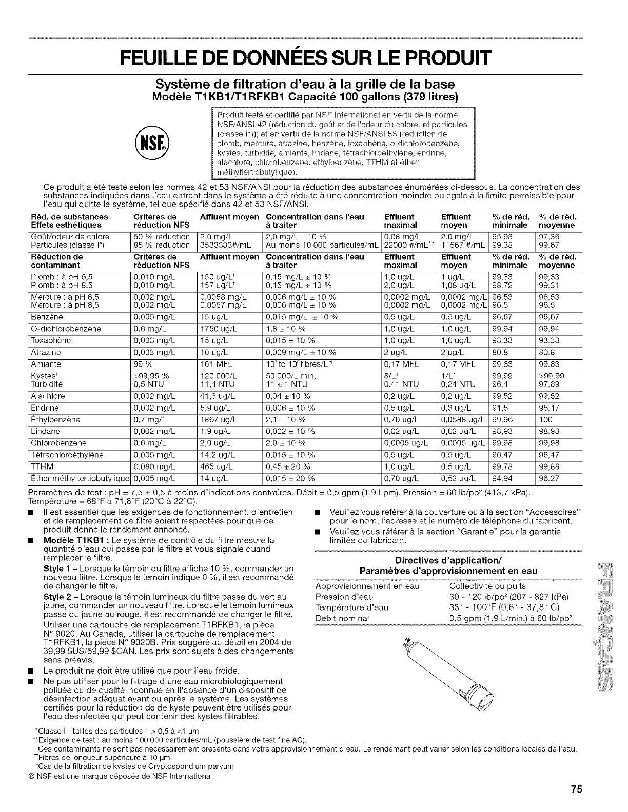 tCes contaminants ne sent pas necessairement presents dans votre approvisionnement d'eau. Le rendement peut varier selon les conditions locales de I'eau.