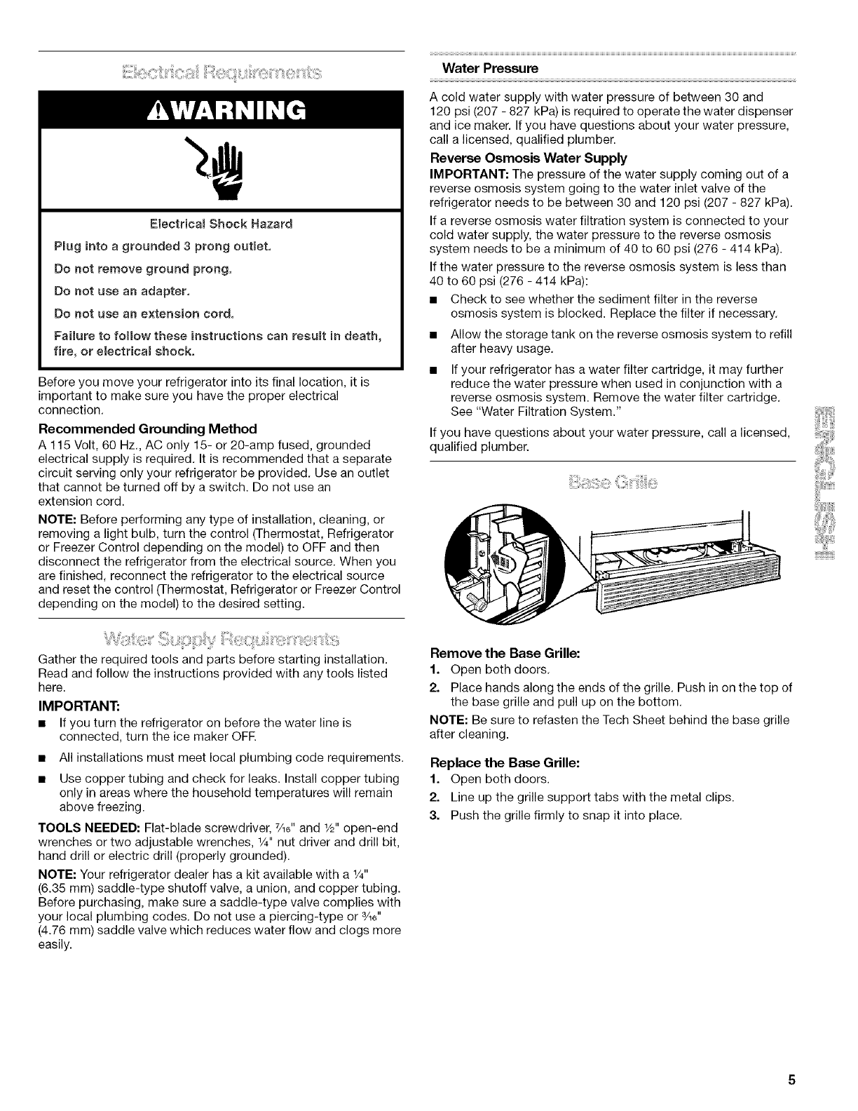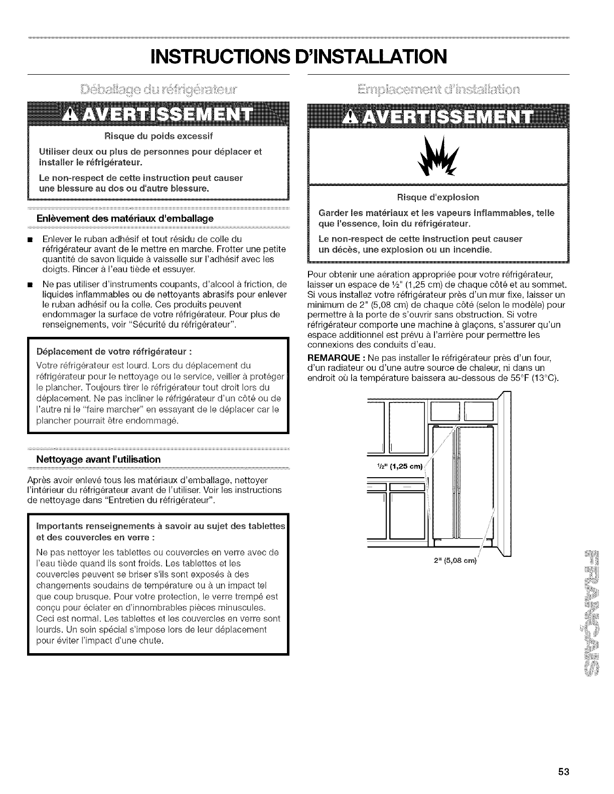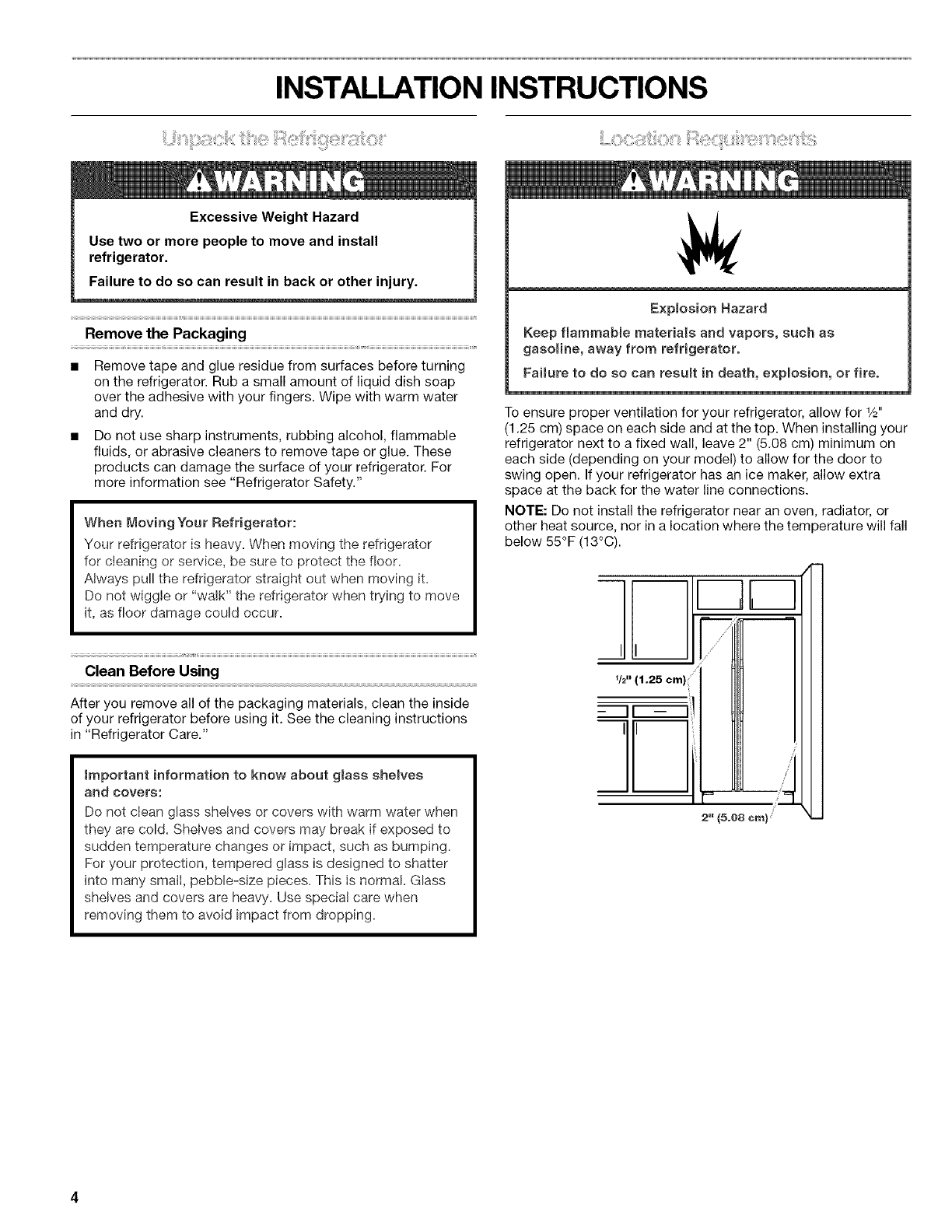 KENMORE Side by Side Refrigerator Manual L0523172 KENMORE Side by Side Refrigerator Owner's Manual, KENMORE Side by Side Refrigerator installation guides