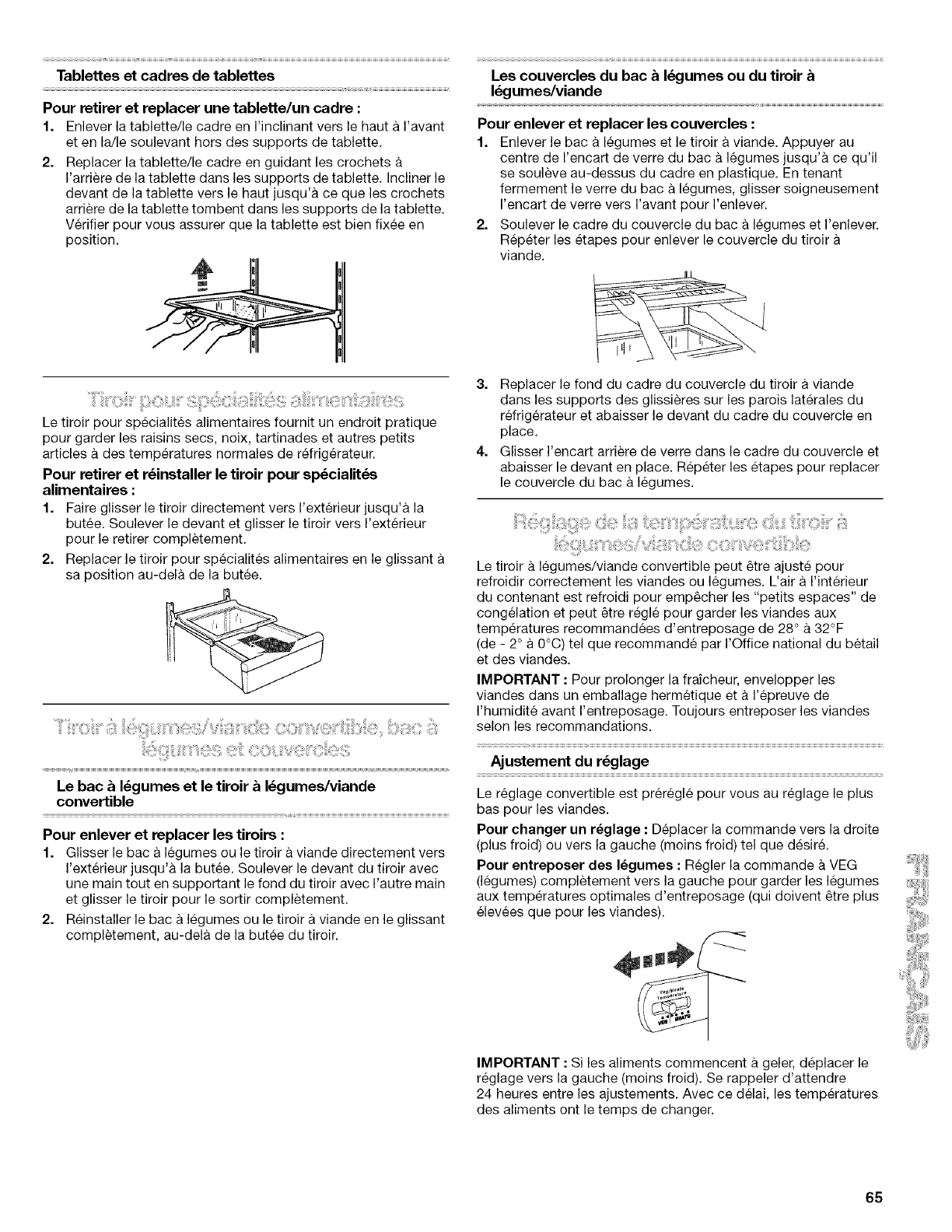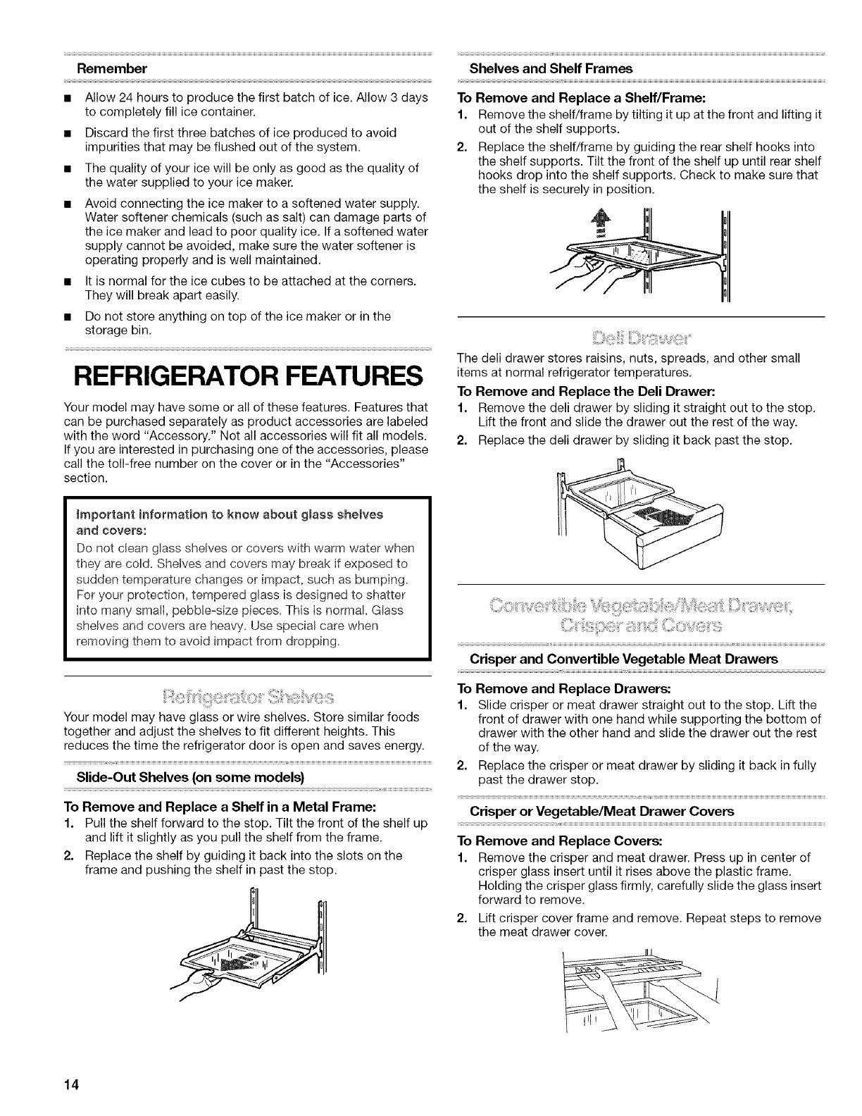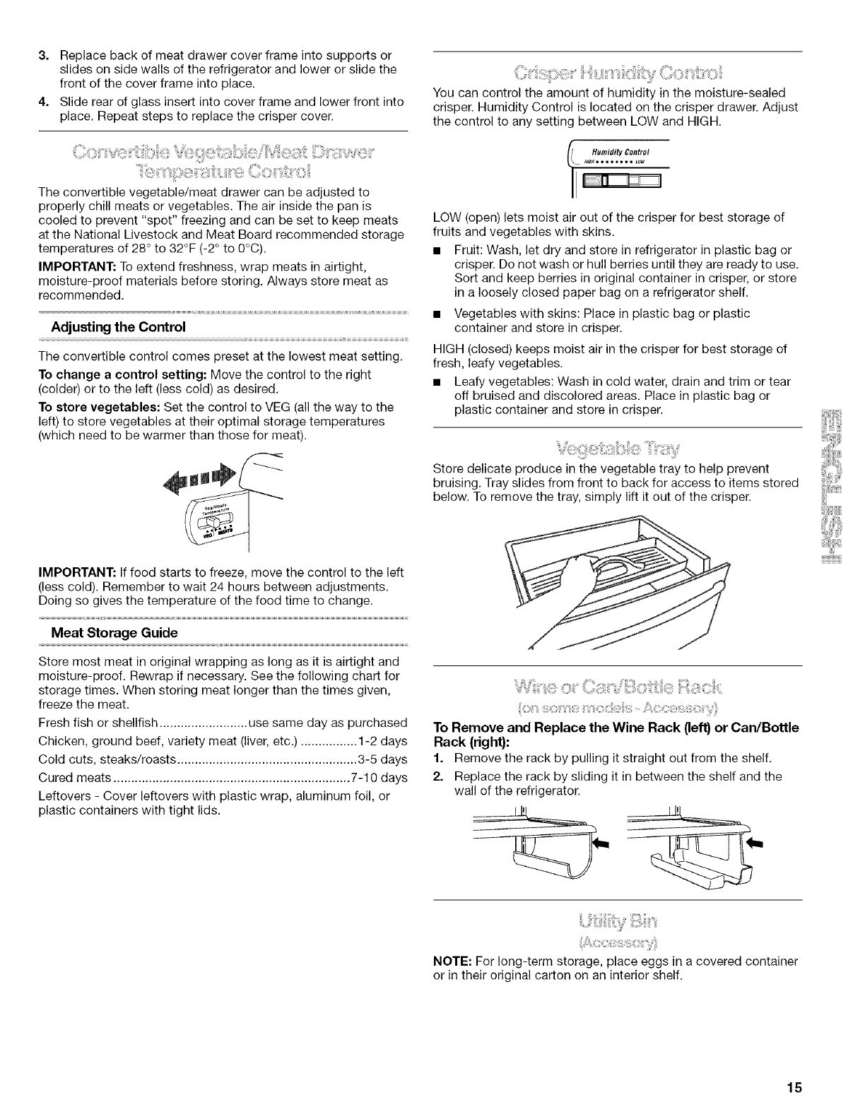 Convertible Vegetable/Meat Drawer, Crisper and Covers ....... 14