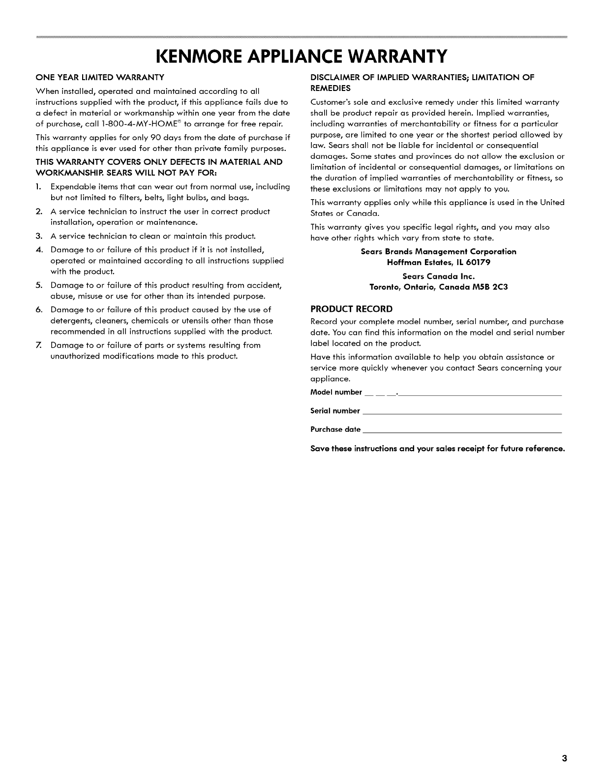 Kenmore 10672002010 1103670L User Manual REFRIGERATOR Manuals And Guides