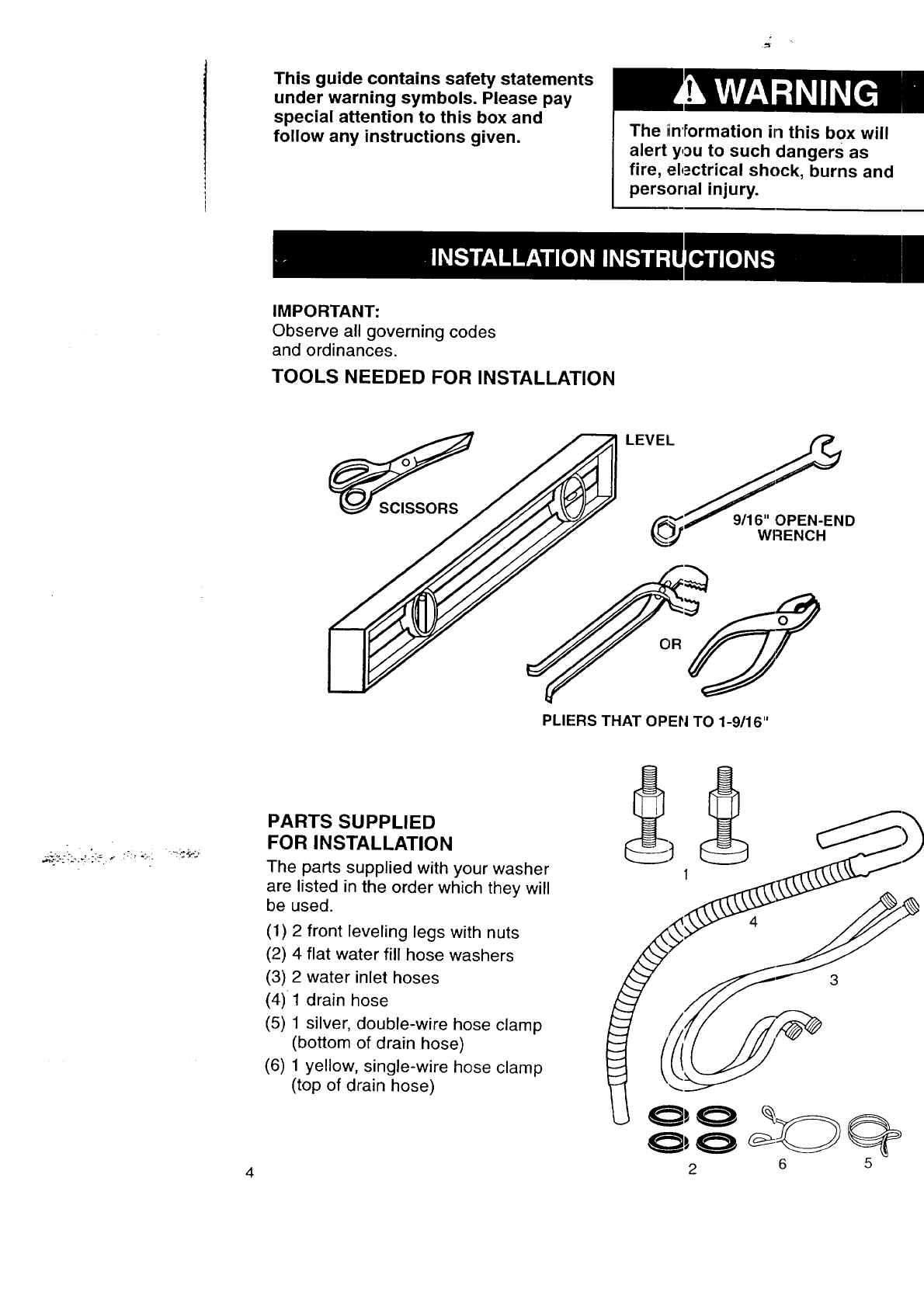 KENMORE Residential Washers Manual 97110285 KENMORE Residential Washers Owner's Manual, KENMORE Residential Washers installation guides