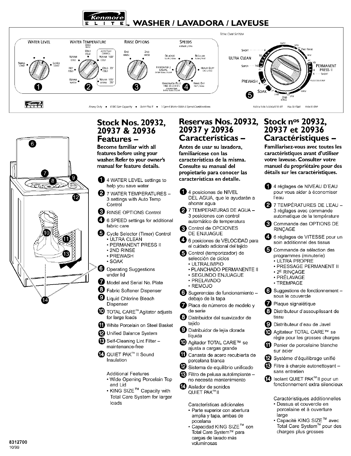 Kenmore 11020936993 User Manual WASHER Manuals And Guides L0305217
