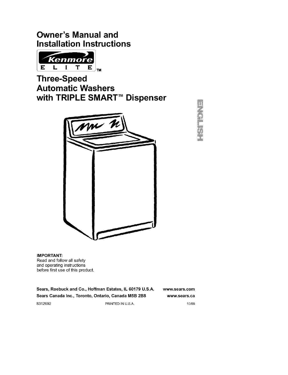 Kenmore 11020982992 User Manual WASHER Manuals And Guides L0305260