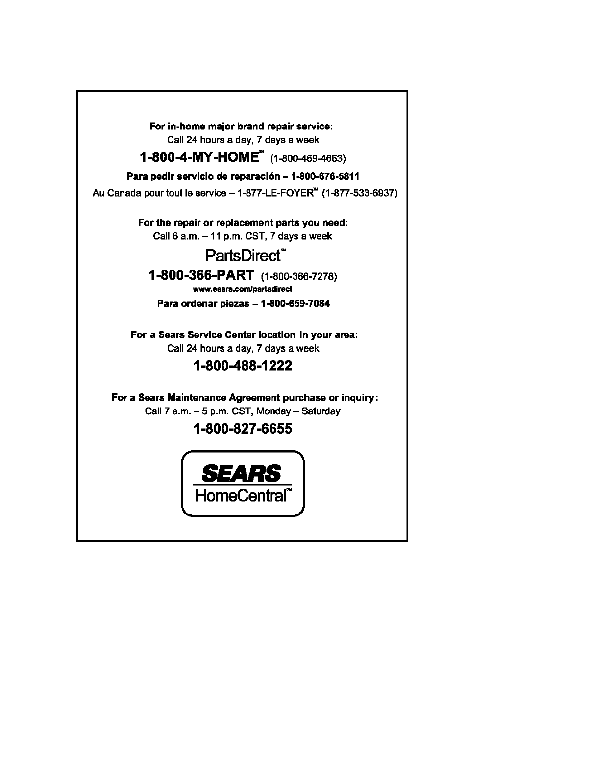 Sears, Roebuck and Co., Hoffman Estates, IL 60179 U,S.A. www.sears.com