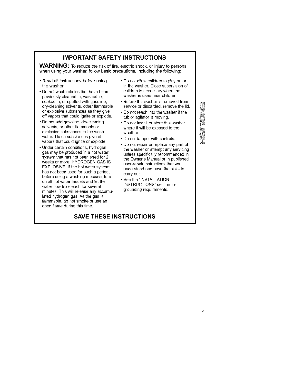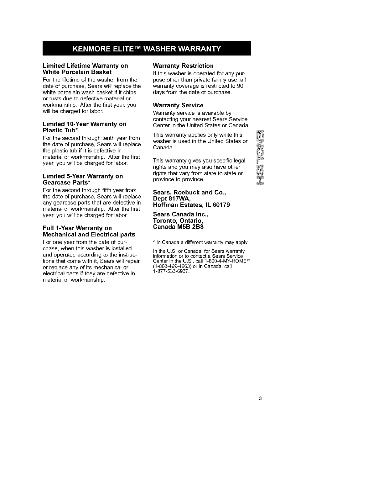 KENMORE Residential Washers Manual L0305260 KENMORE Residential Washers Owner's Manual, KENMORE Residential Washers installation guides