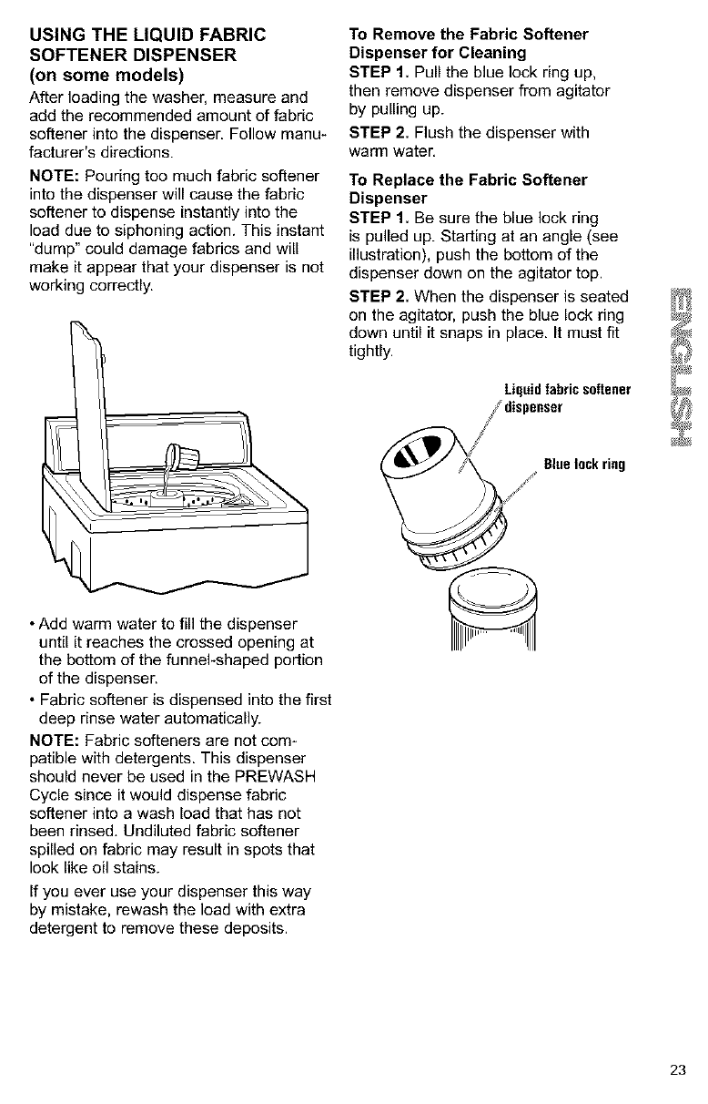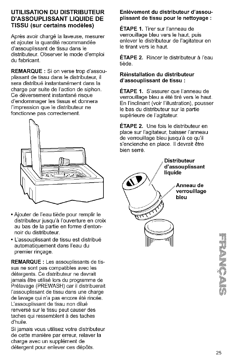 Distributeur Assouplissant non dilue. Dissoudre I'assouplissant de tissu