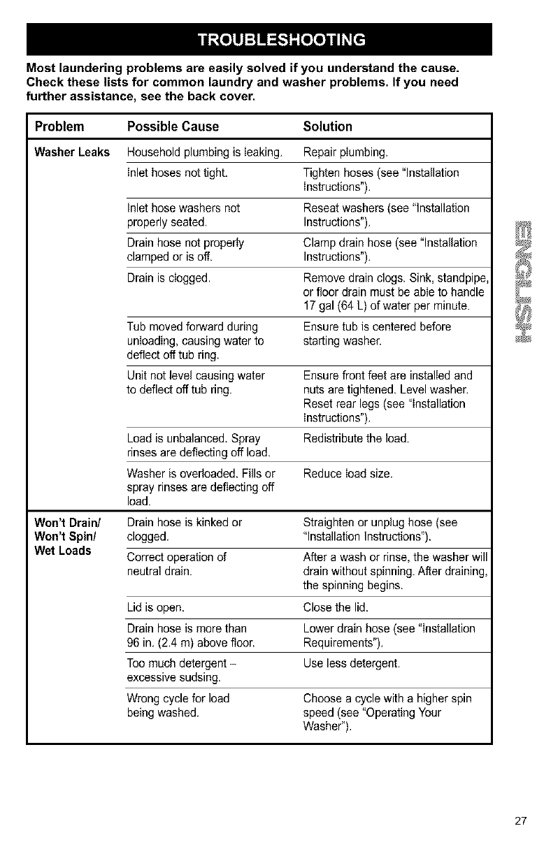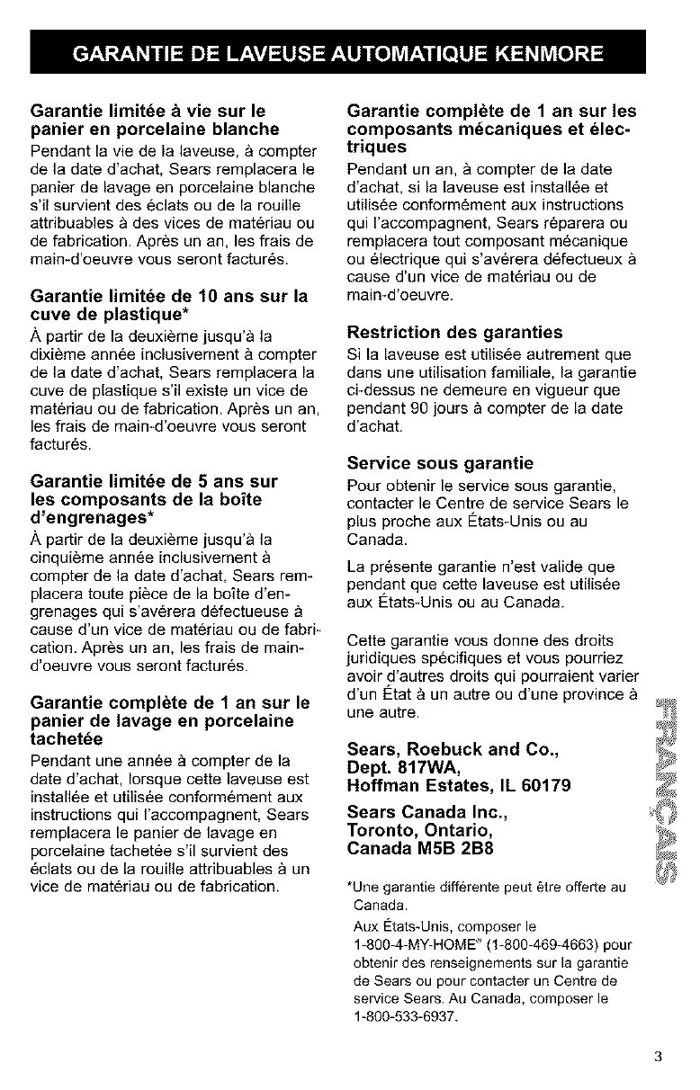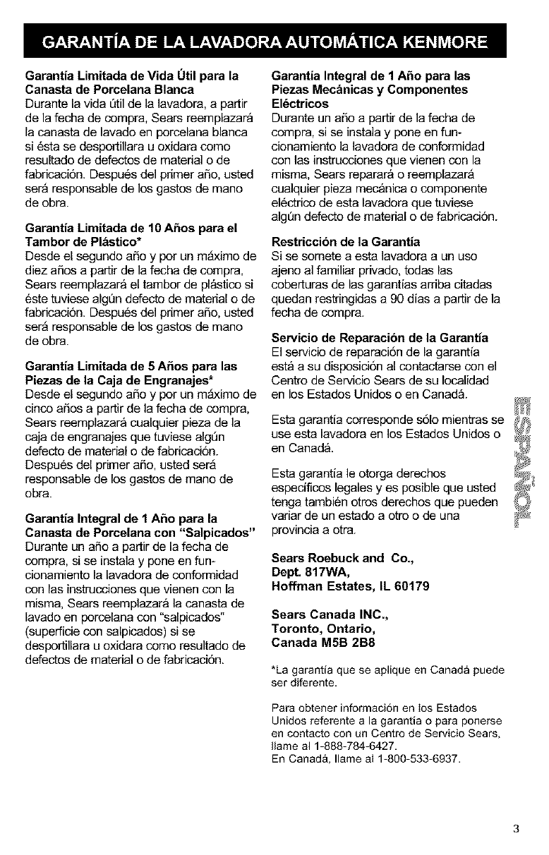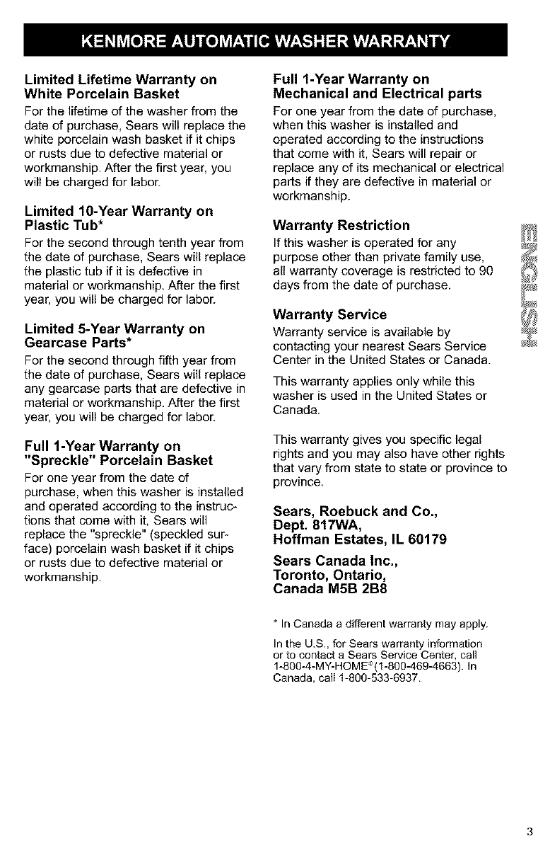 KENMORE AUTOMATIC WASHER WARRANTY 3