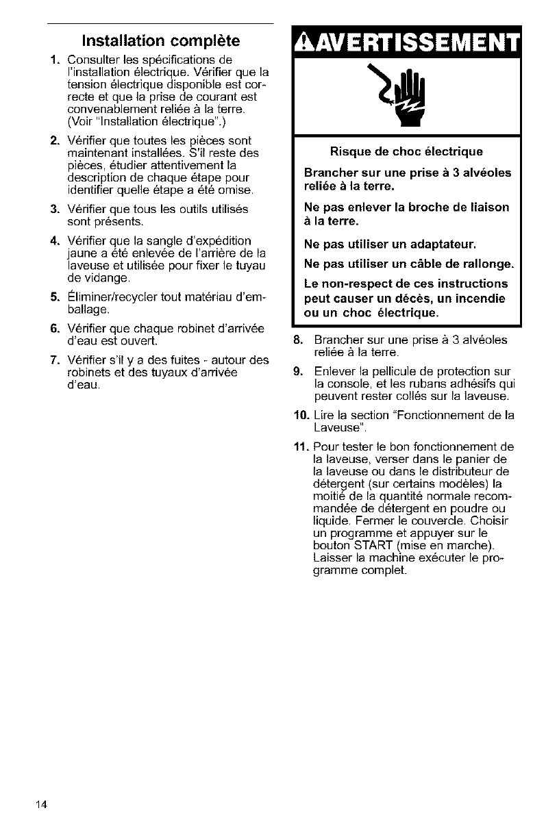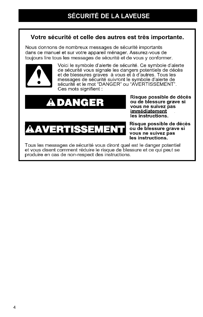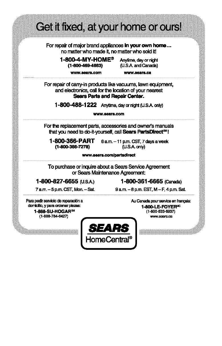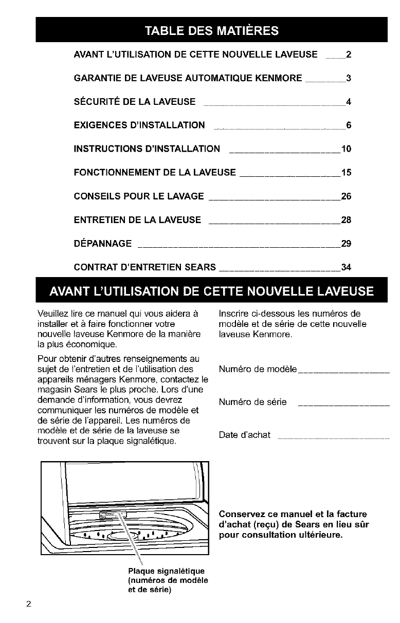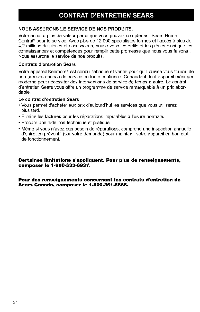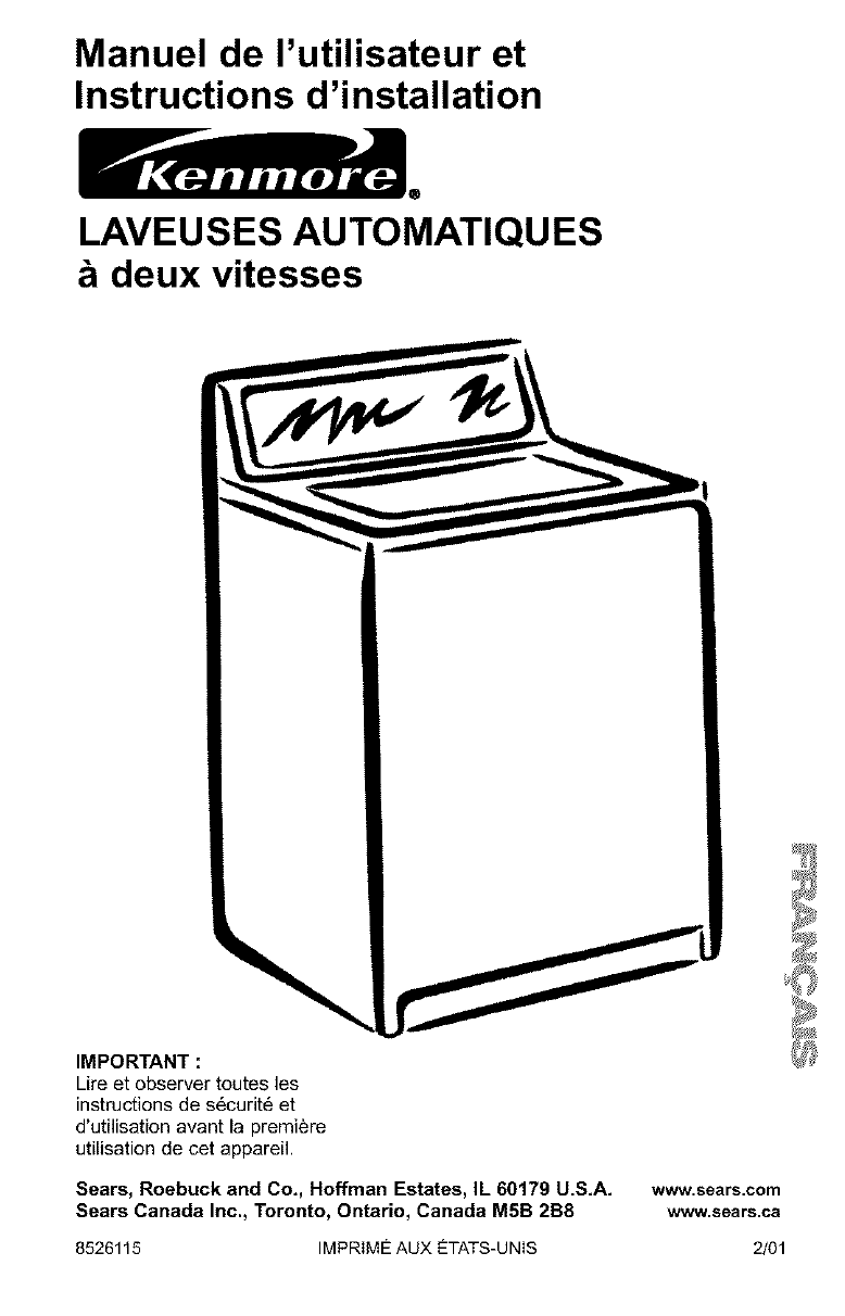 Votre appareil Kenmore _ est congu, fabrique et v6rifl6 pour qu'il puisse vous fournir de