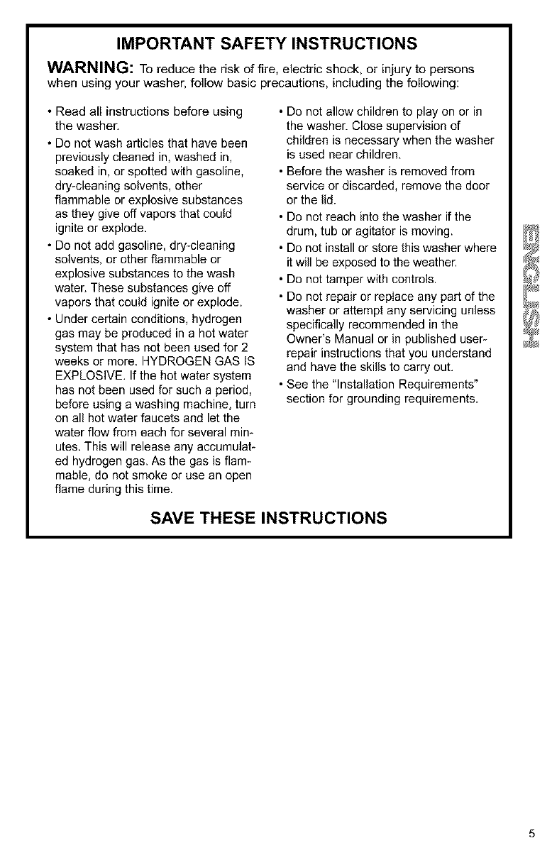 KENMORE Residential Washers Manual L0407344 KENMORE Residential Washers Owner's Manual, KENMORE Residential Washers installation guides