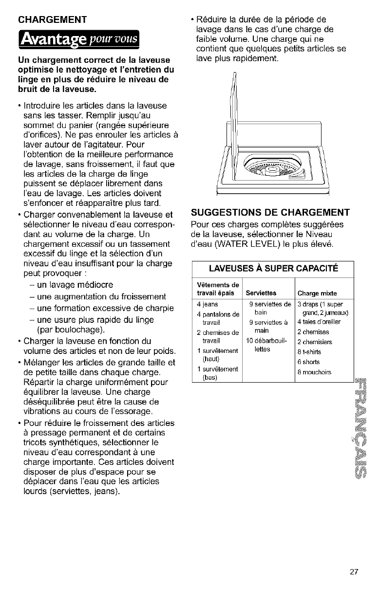 Linge Charge excessive. Le linge doit pouvoir se d_placer
