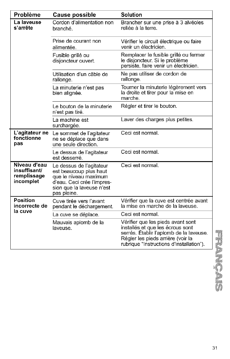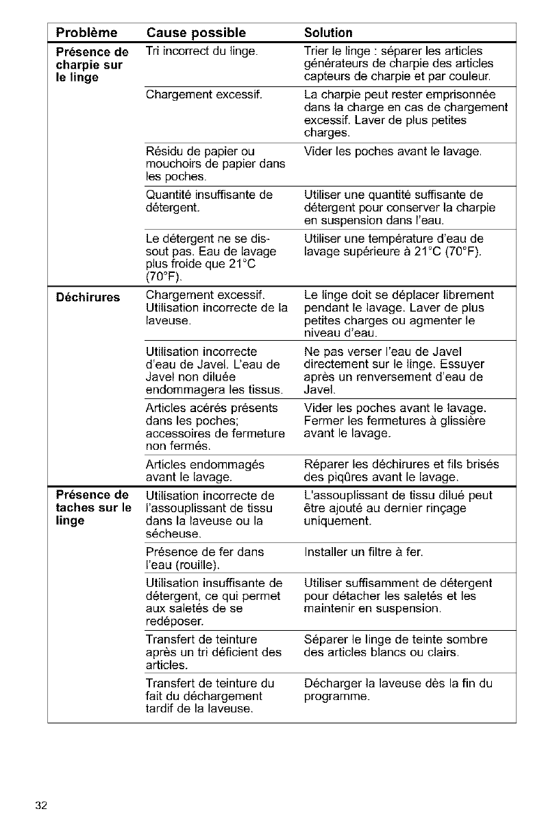 Utilisation insuffisante de Utiliser suffisamment de detergent
