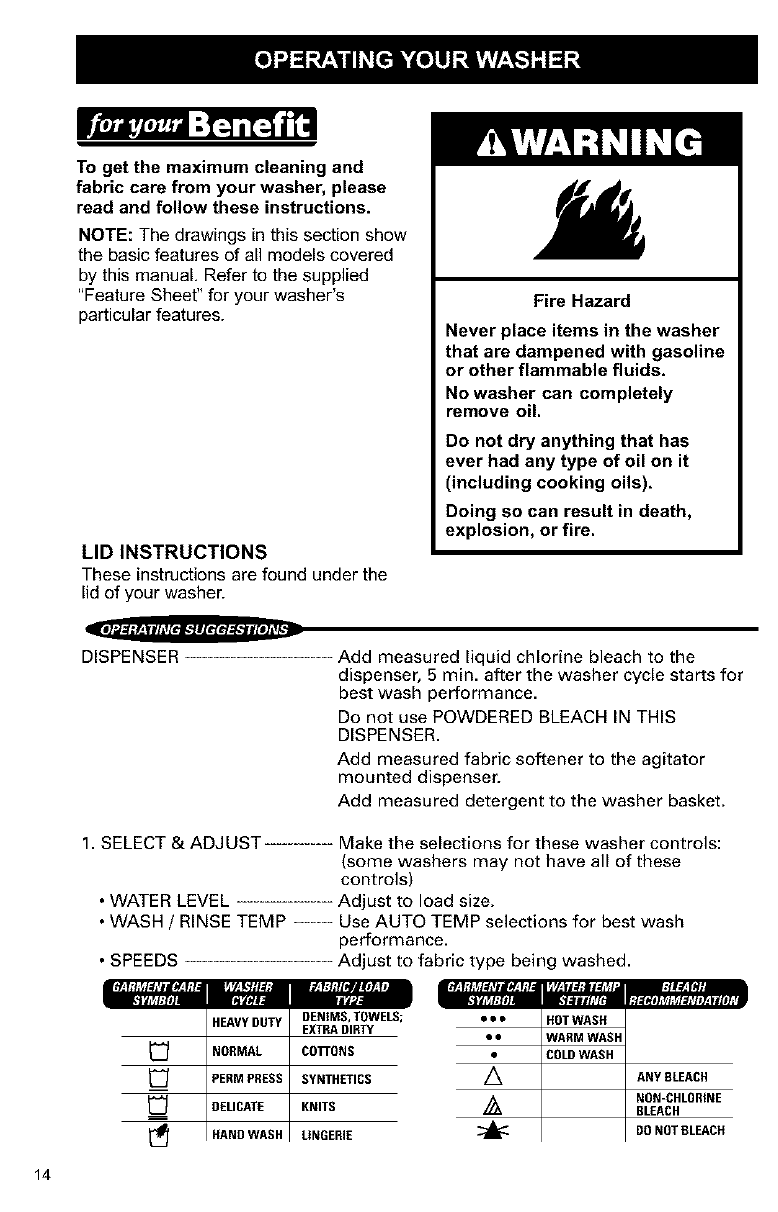 Kenmore 11022632100 User Manual WASHER Manuals And Guides L0407344