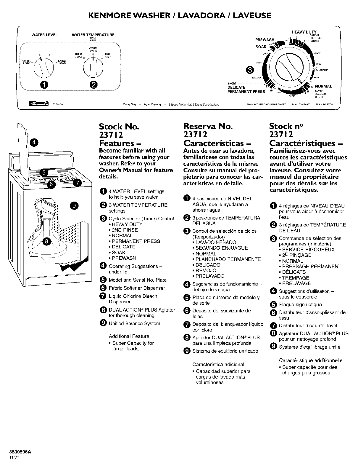 Kenmore 11023712200 User Manual AUTOMATIC WASHER Manuals And Guides L0305192