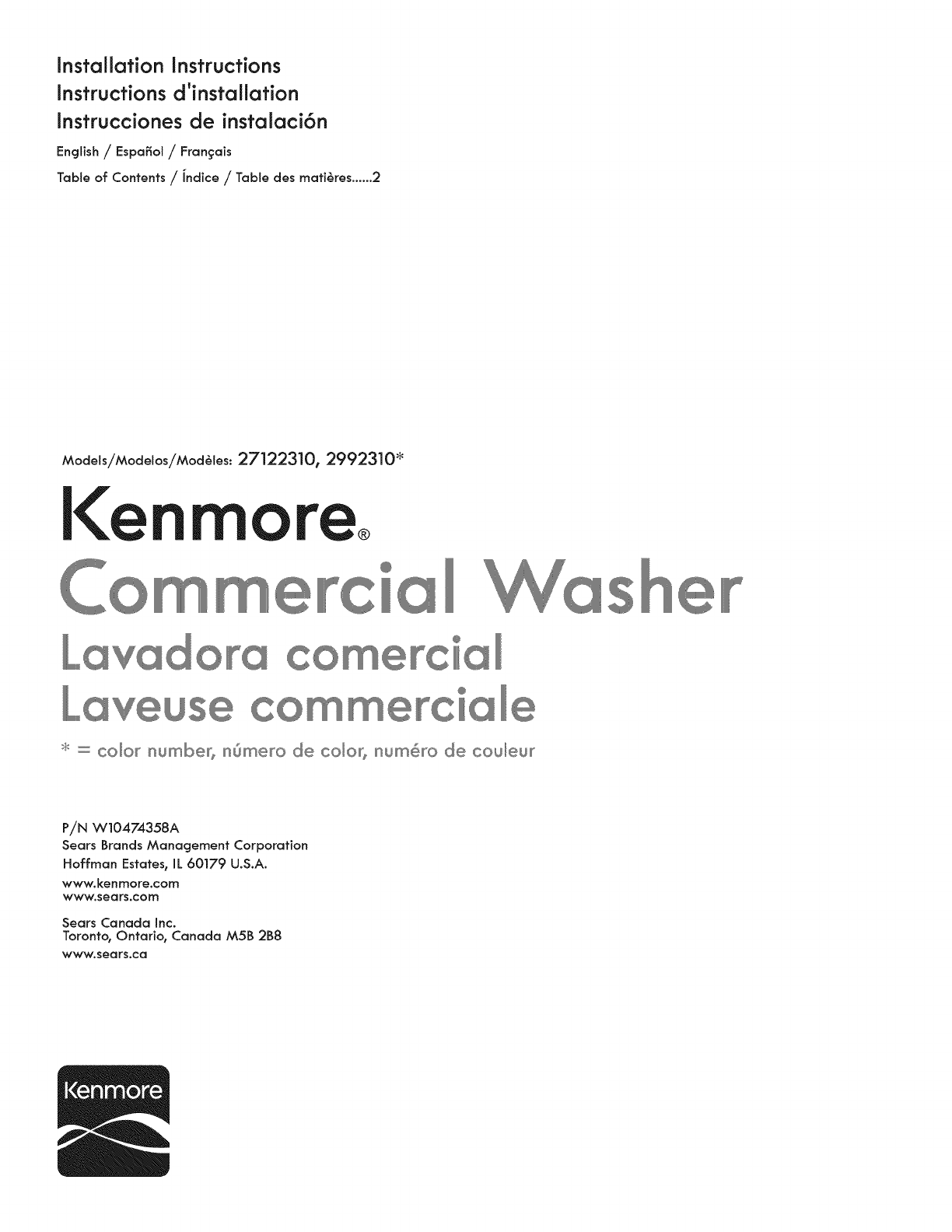 Kenmore 11027122310 User Manual COMMERCIAL AUTOMATIC WASHER Manuals And Guides 1304435L