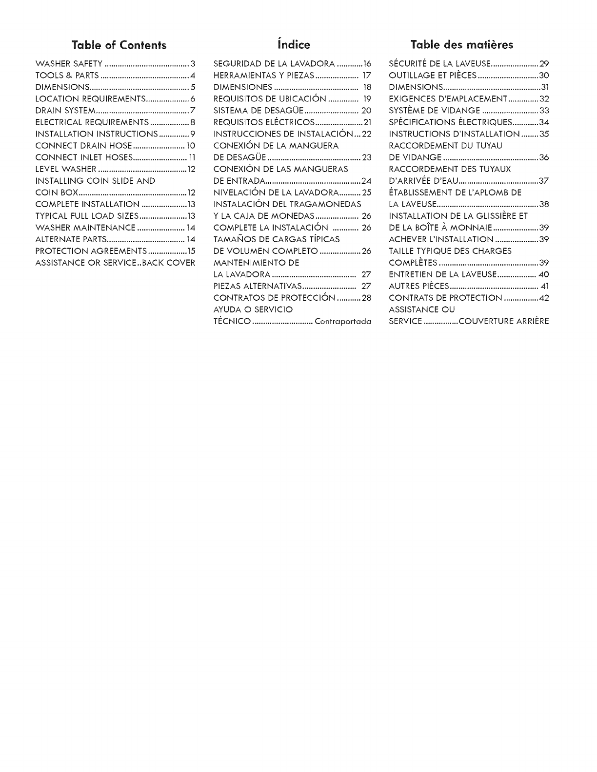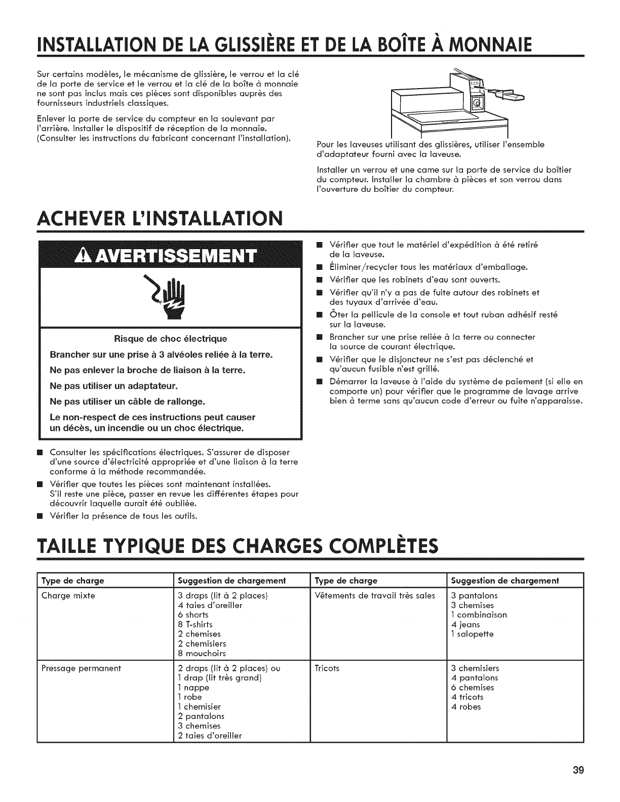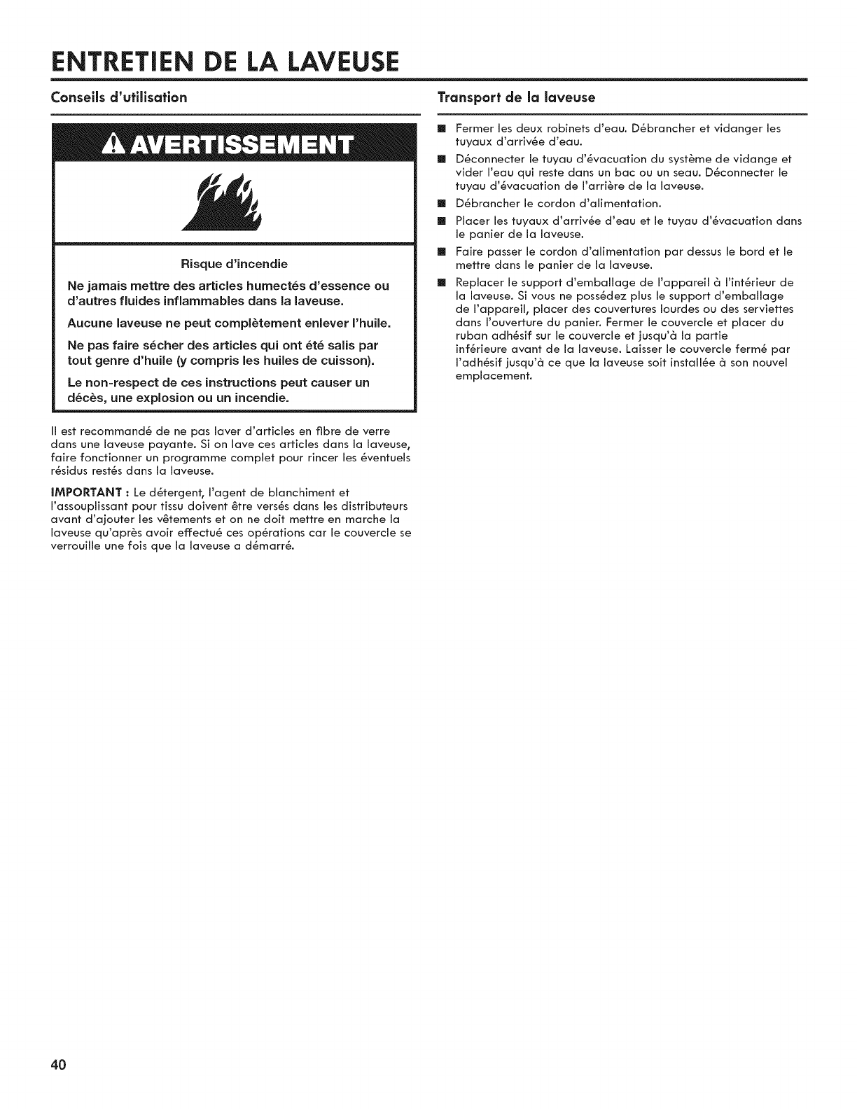 ENTRETIEN DE LA LAVEUSE .................. 40