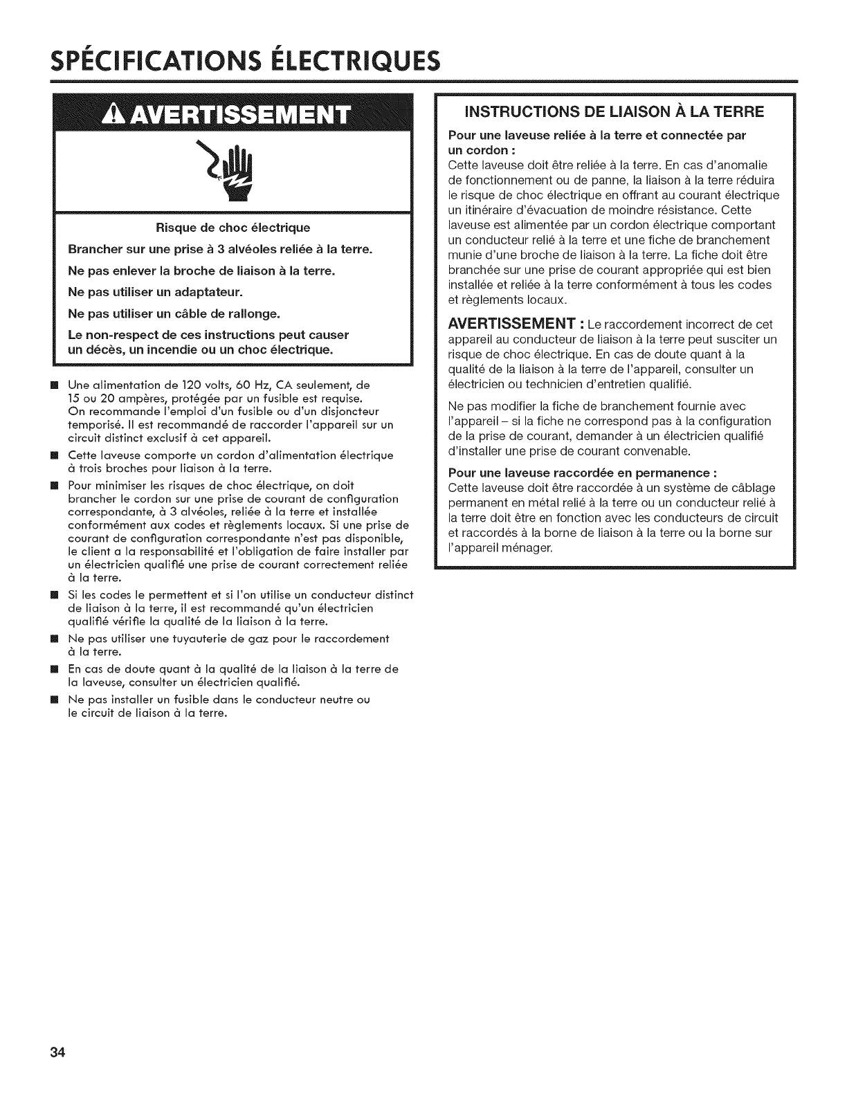 SP_:CIFICATIONS ELECTRIQUES ............ 34