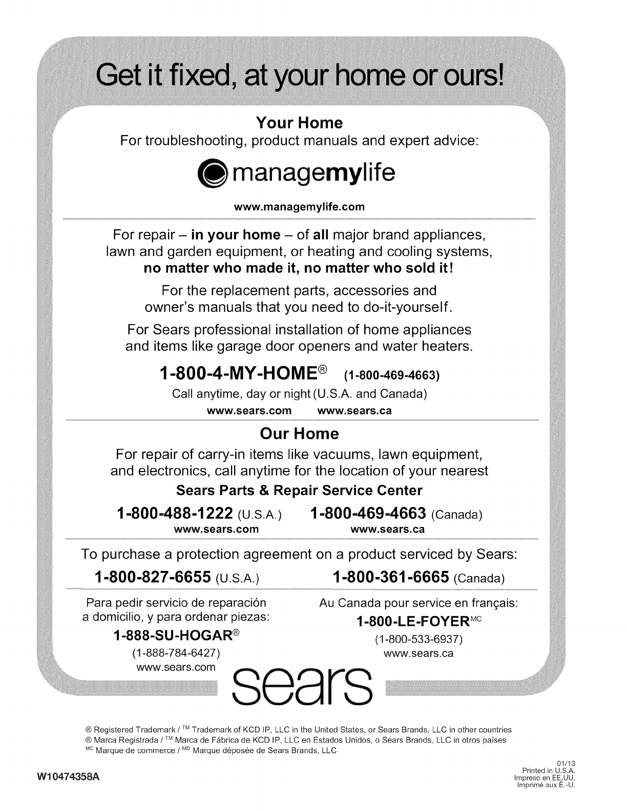 ® Registered Trademark /Trademark of KCD IP, LLC in the United States, or Sears Brands, LLC in other countries