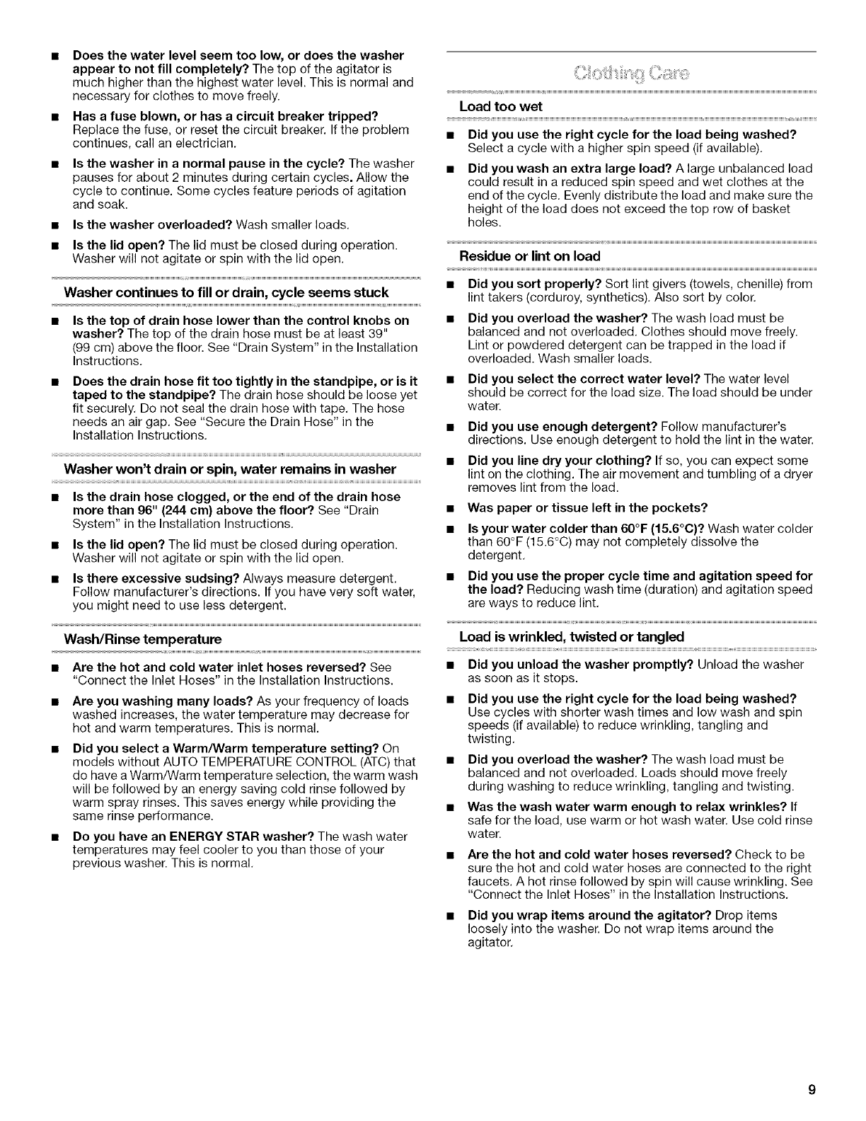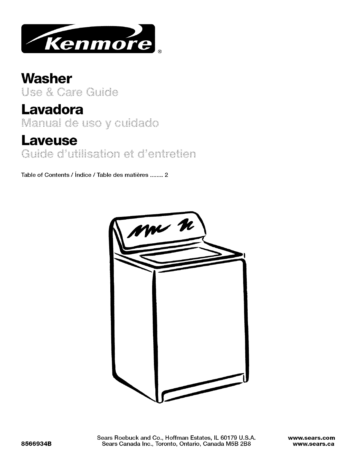 KENMORE Residential Washers Manual L0705087 KENMORE Residential Washers Owner's Manual, KENMORE Residential Washers installation guides
