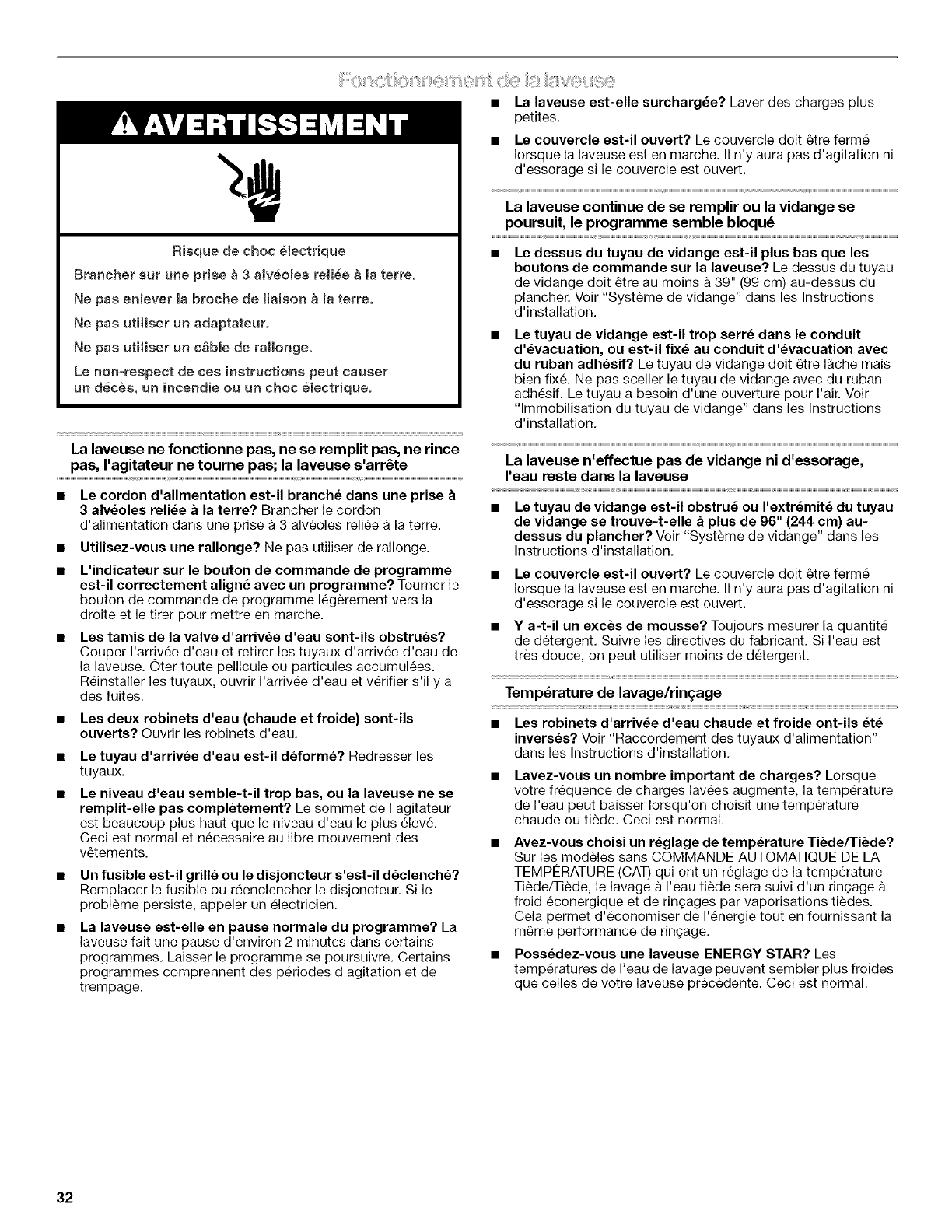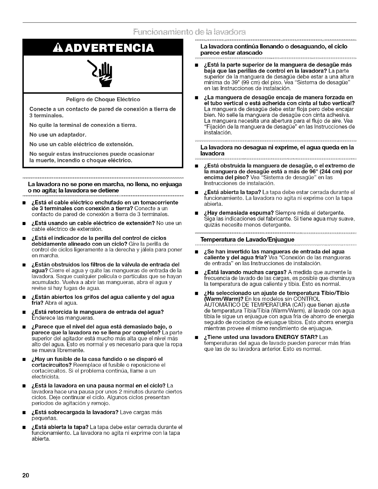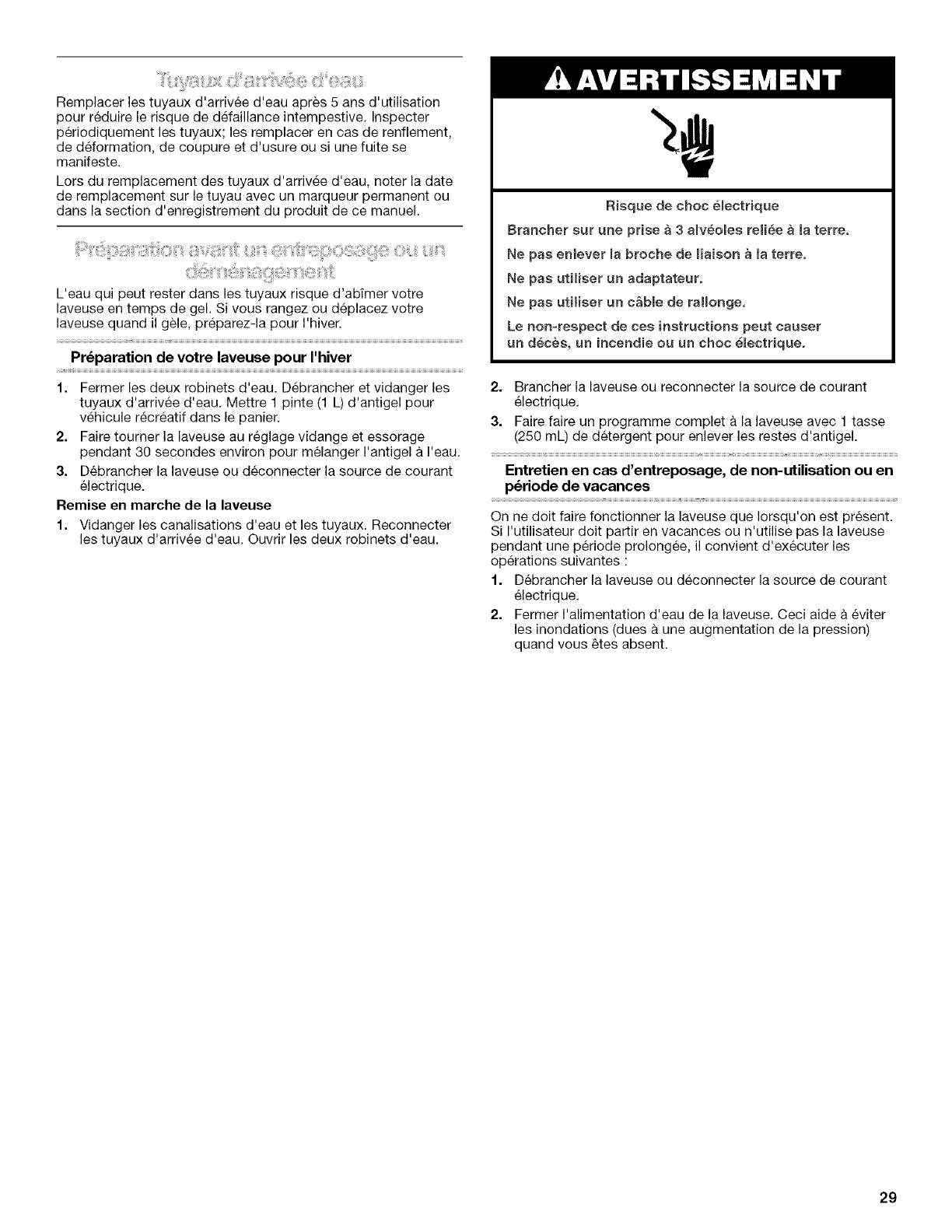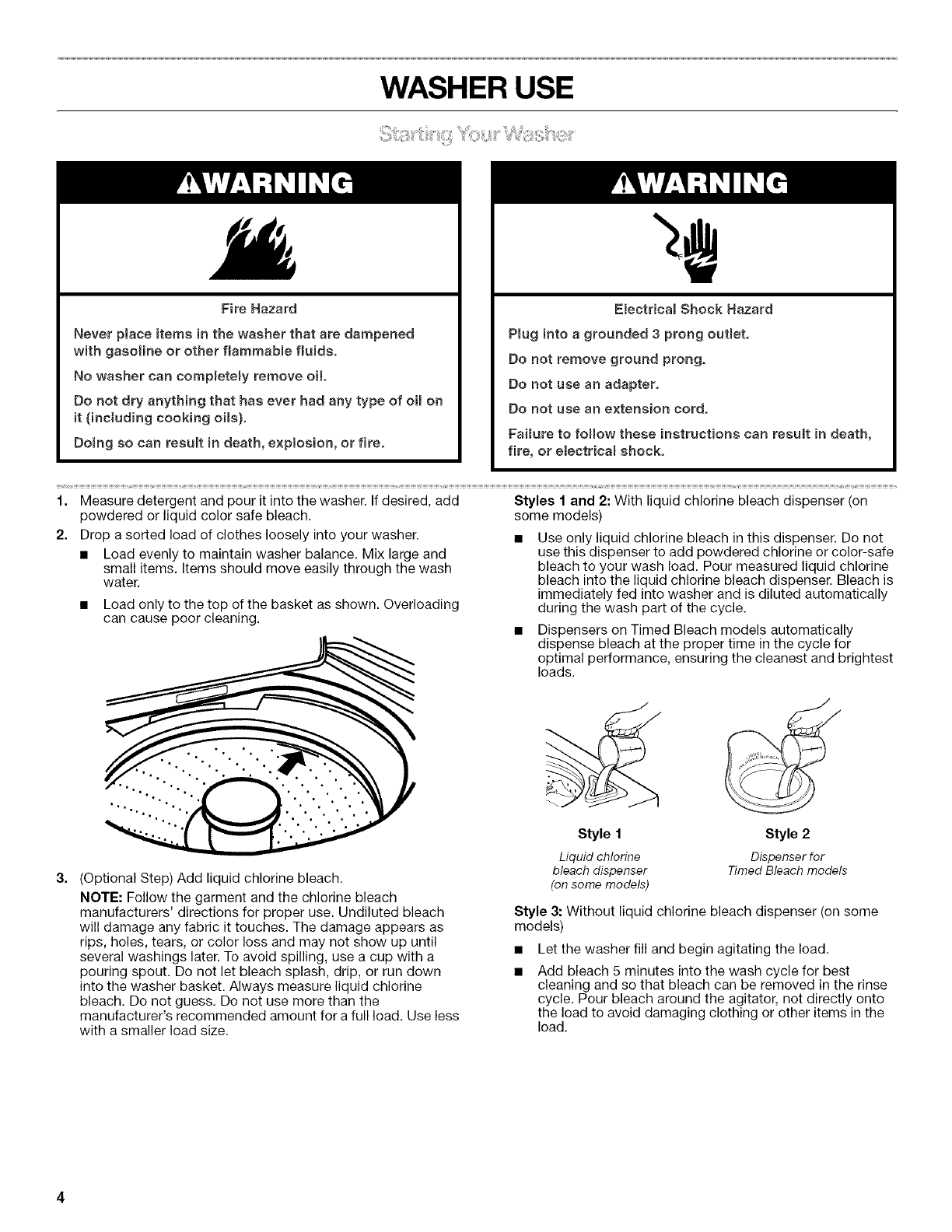 WARNING: To reduce the risk of fire, electric shock, or injury to persons when using the washer, follow basic precautions,
