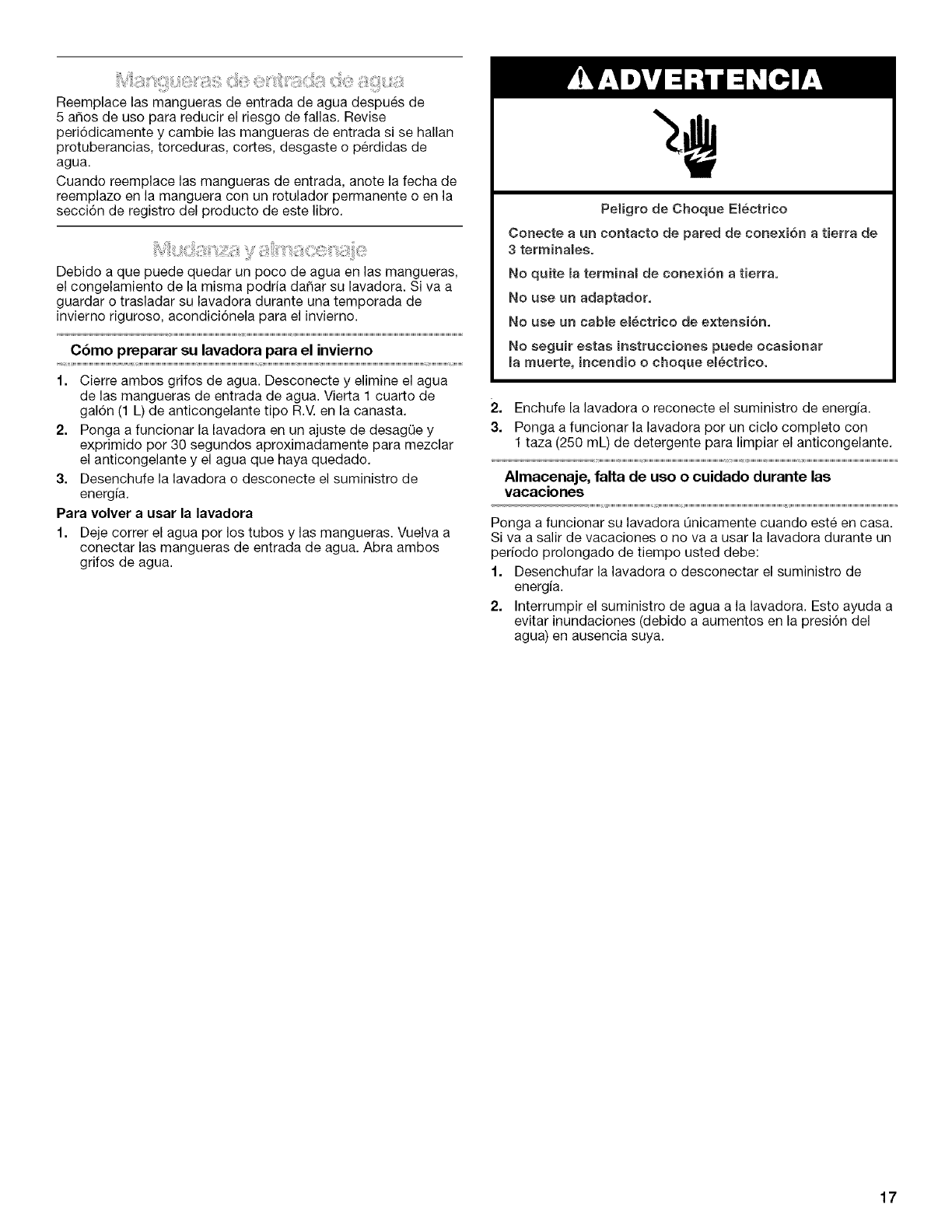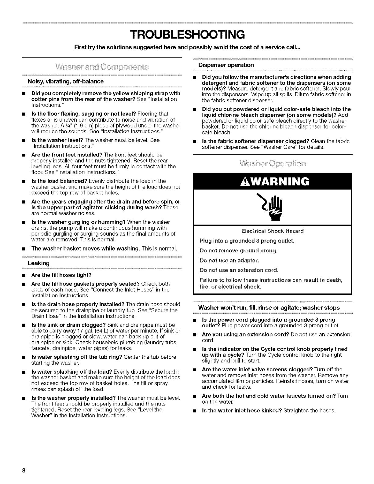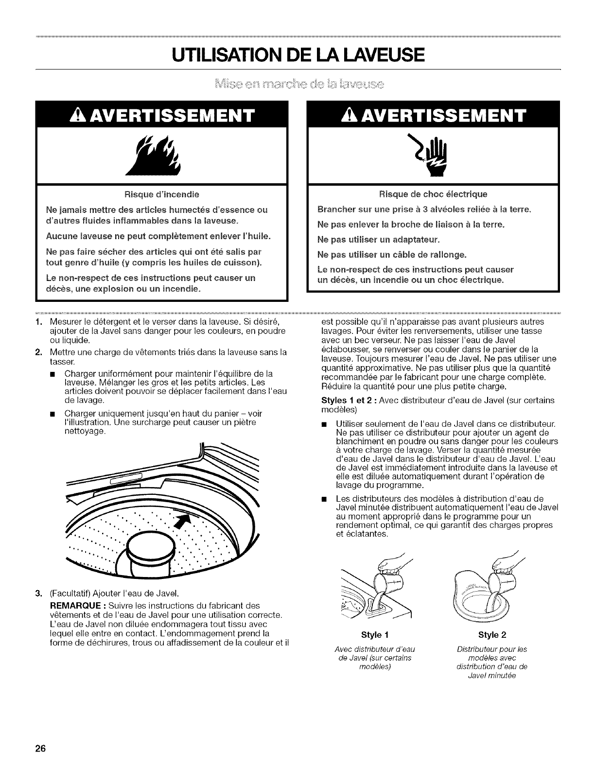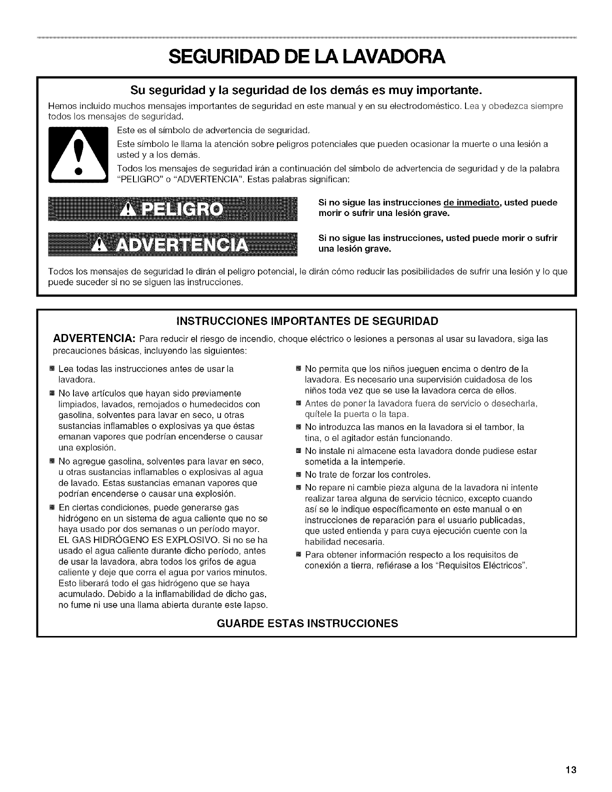 WARNING: To reduce the risk of fire, electric shock, or injury to persons when using the washer, follow basic precautions,
