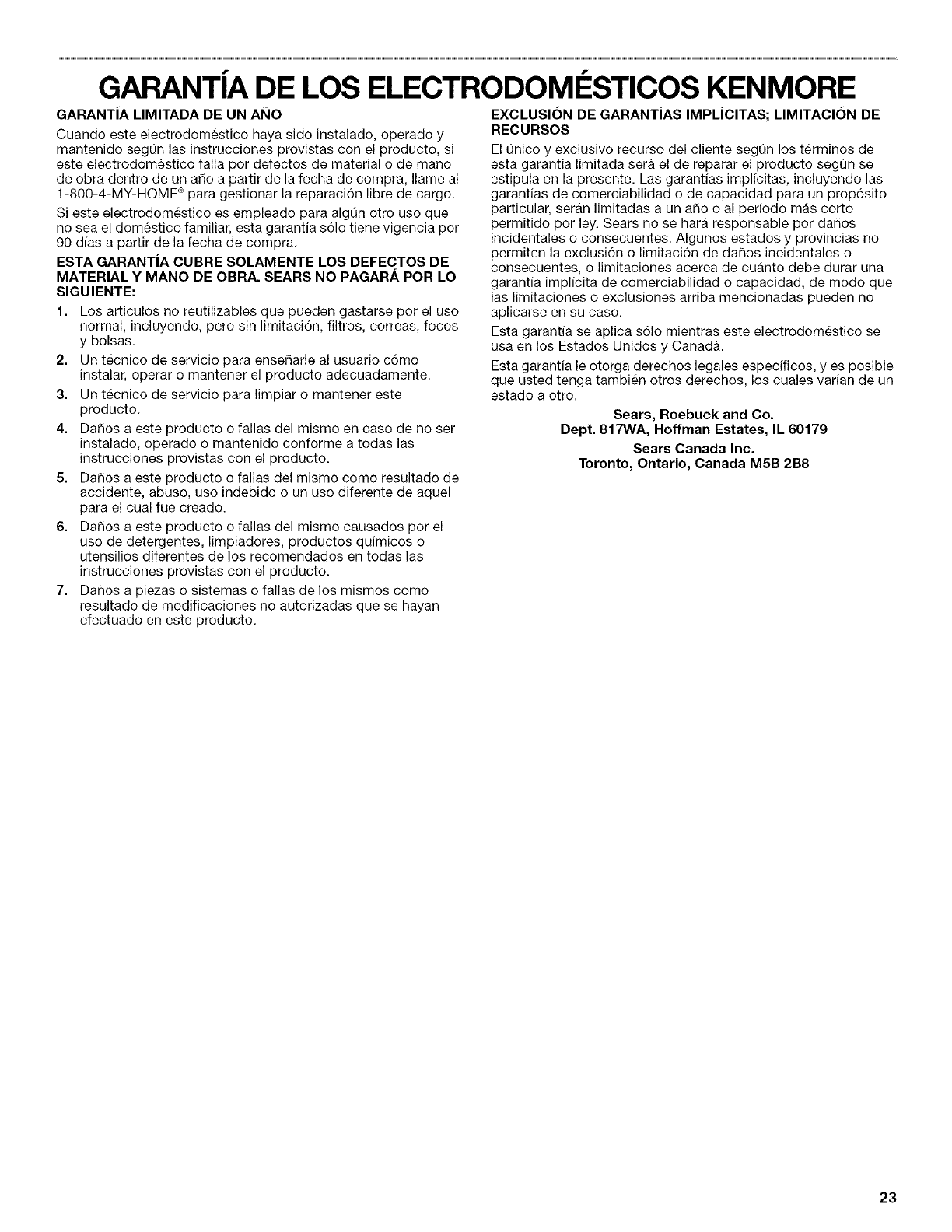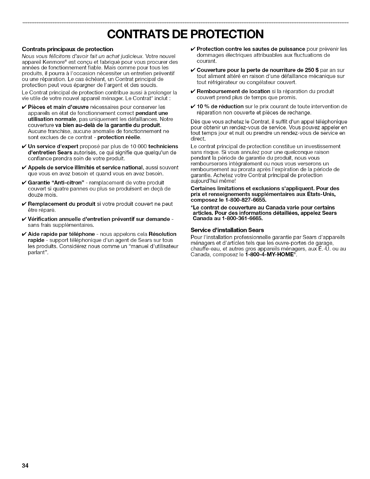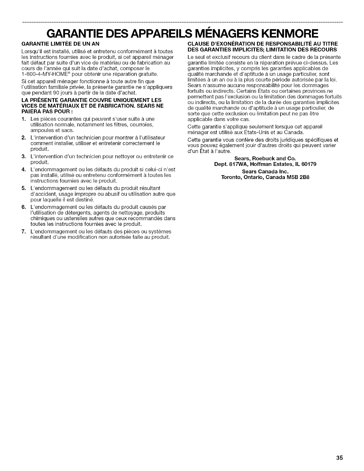 GARANTIE DES APPAREILS MI NAGERS KENMORE
