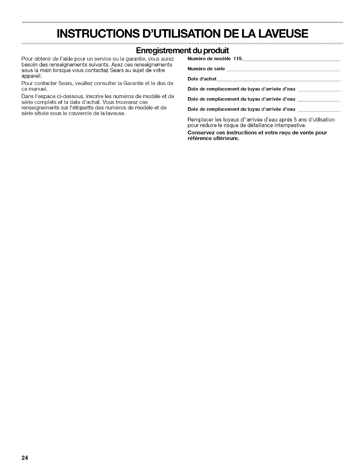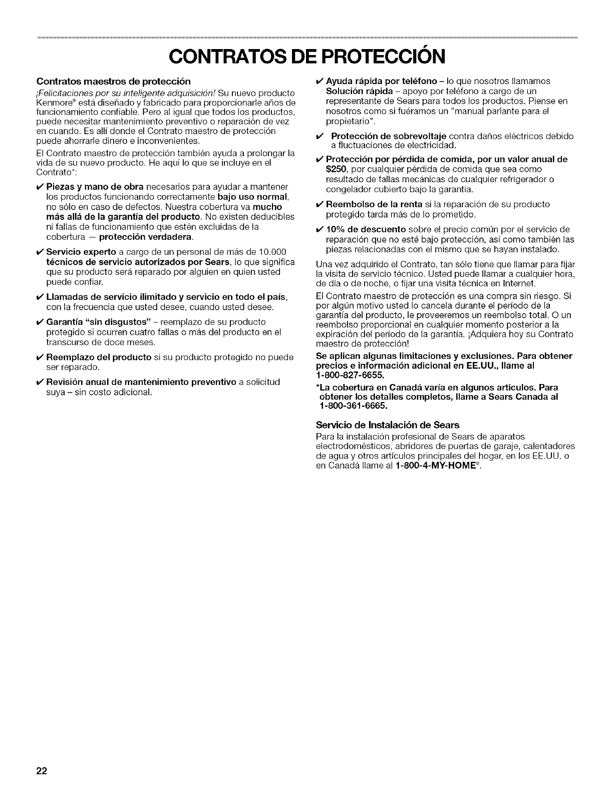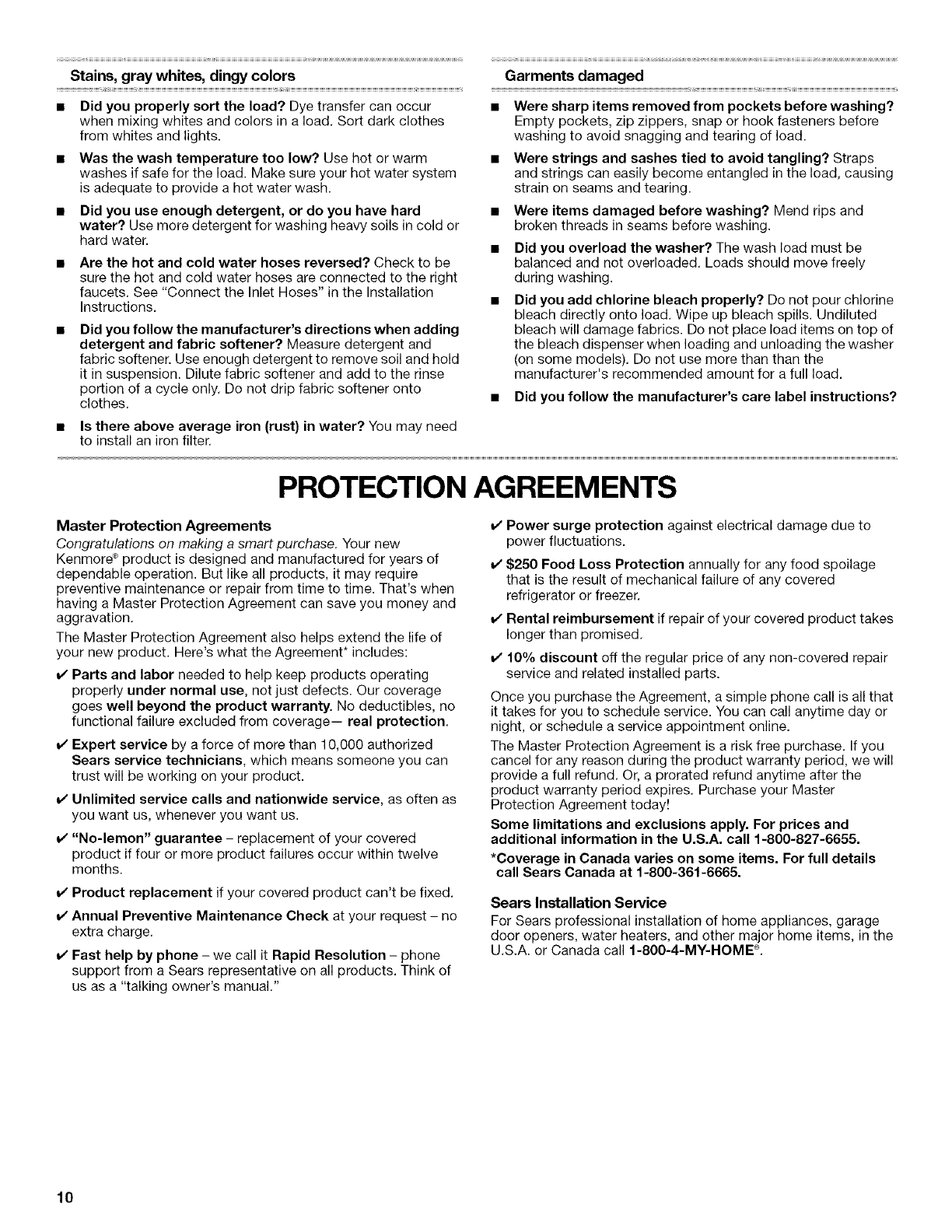 GARANTIE DES APPAREILS MI NAGERS KENMORE