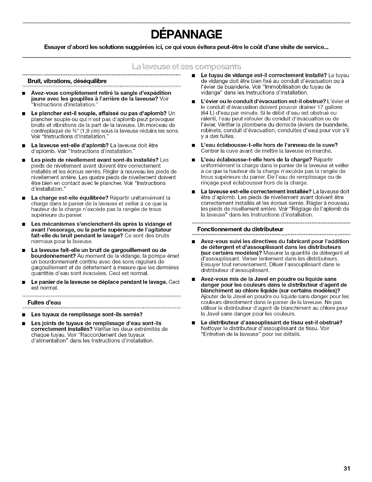 ENTRETIEN DE LA LAVEUSE ...................... 28