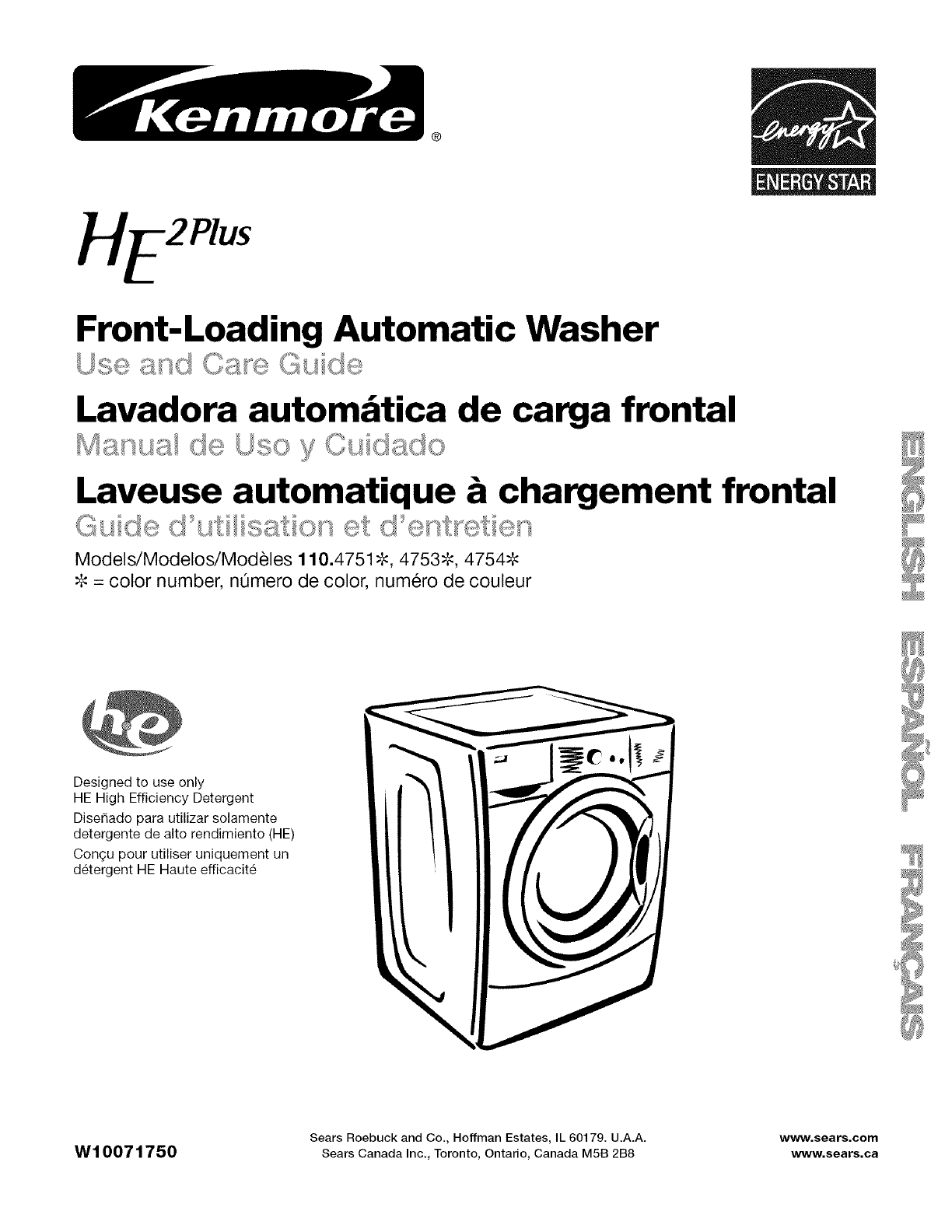 Kenmore 11047512601 User Manual RESIDENTIAL WASHER Manuals And Guides L0704321
