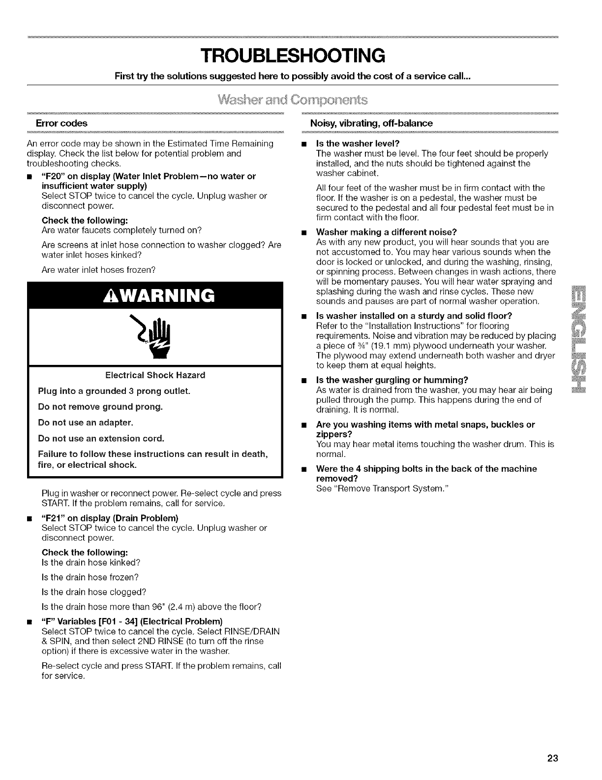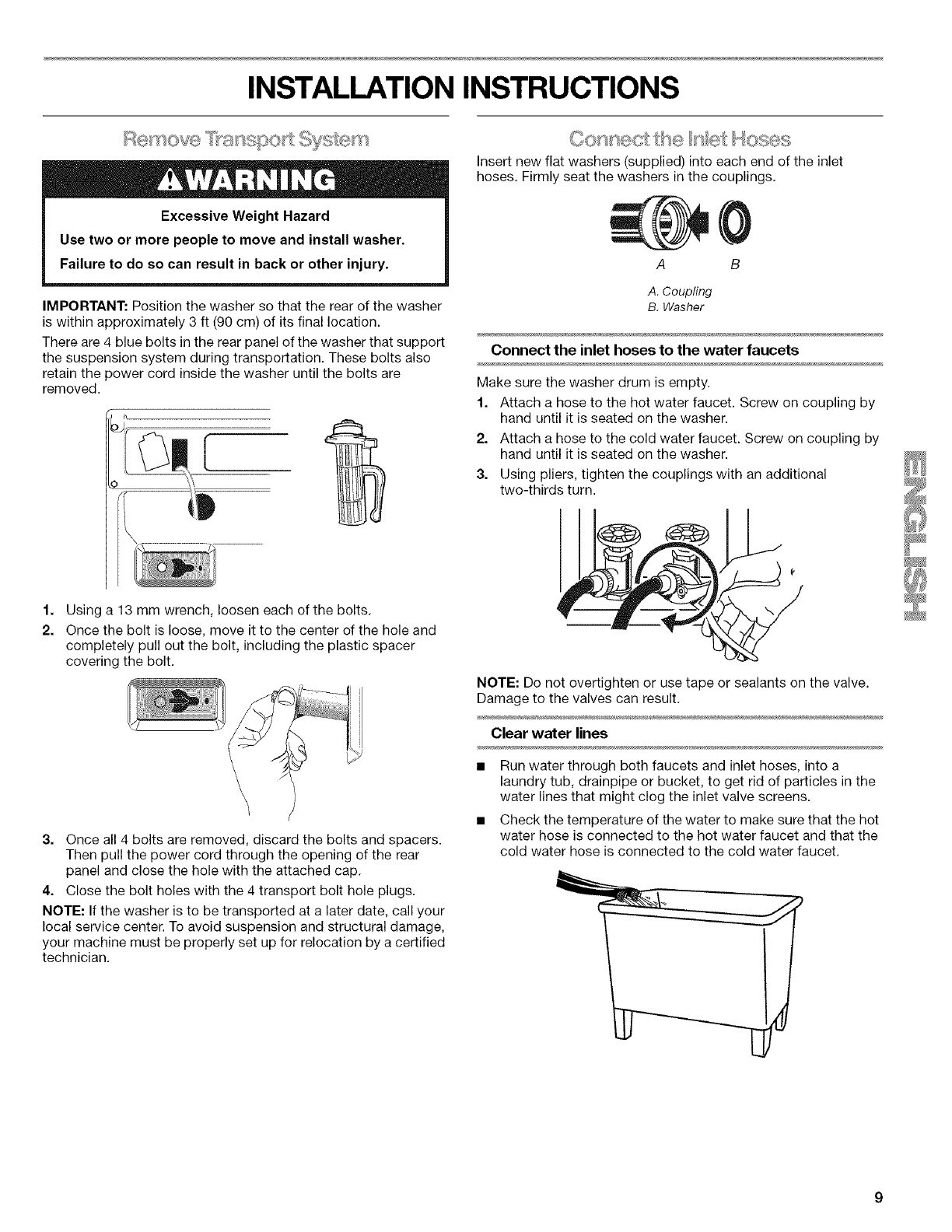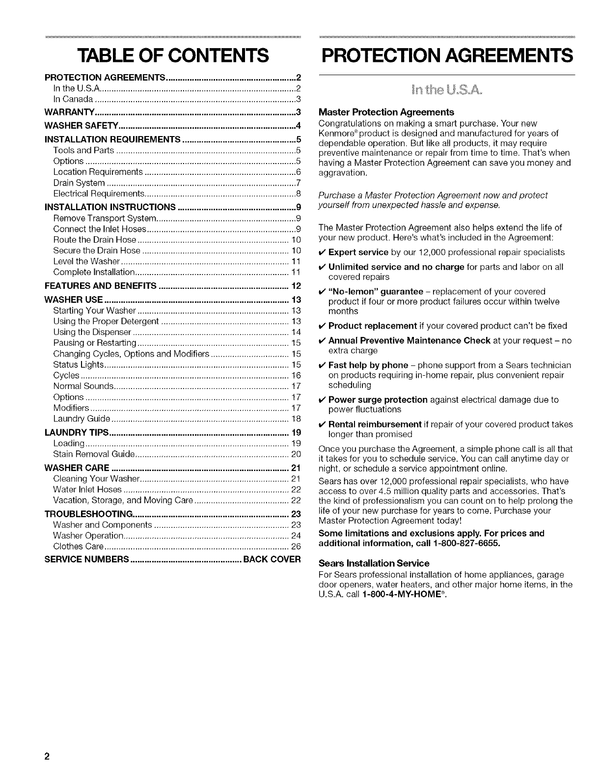 KENMORE Residential Washers Manual L0704321 KENMORE Residential Washers Owner's Manual, KENMORE Residential Washers installation guides