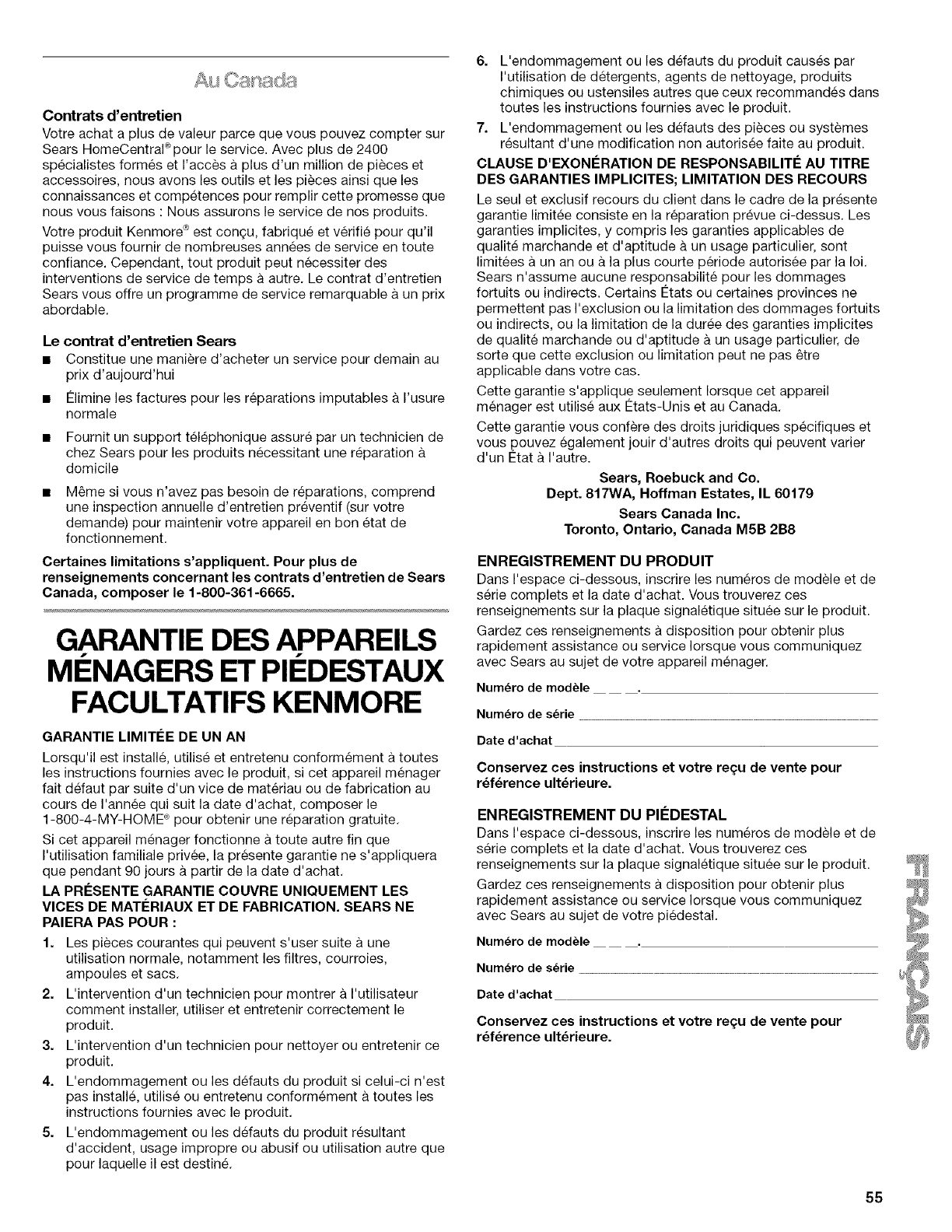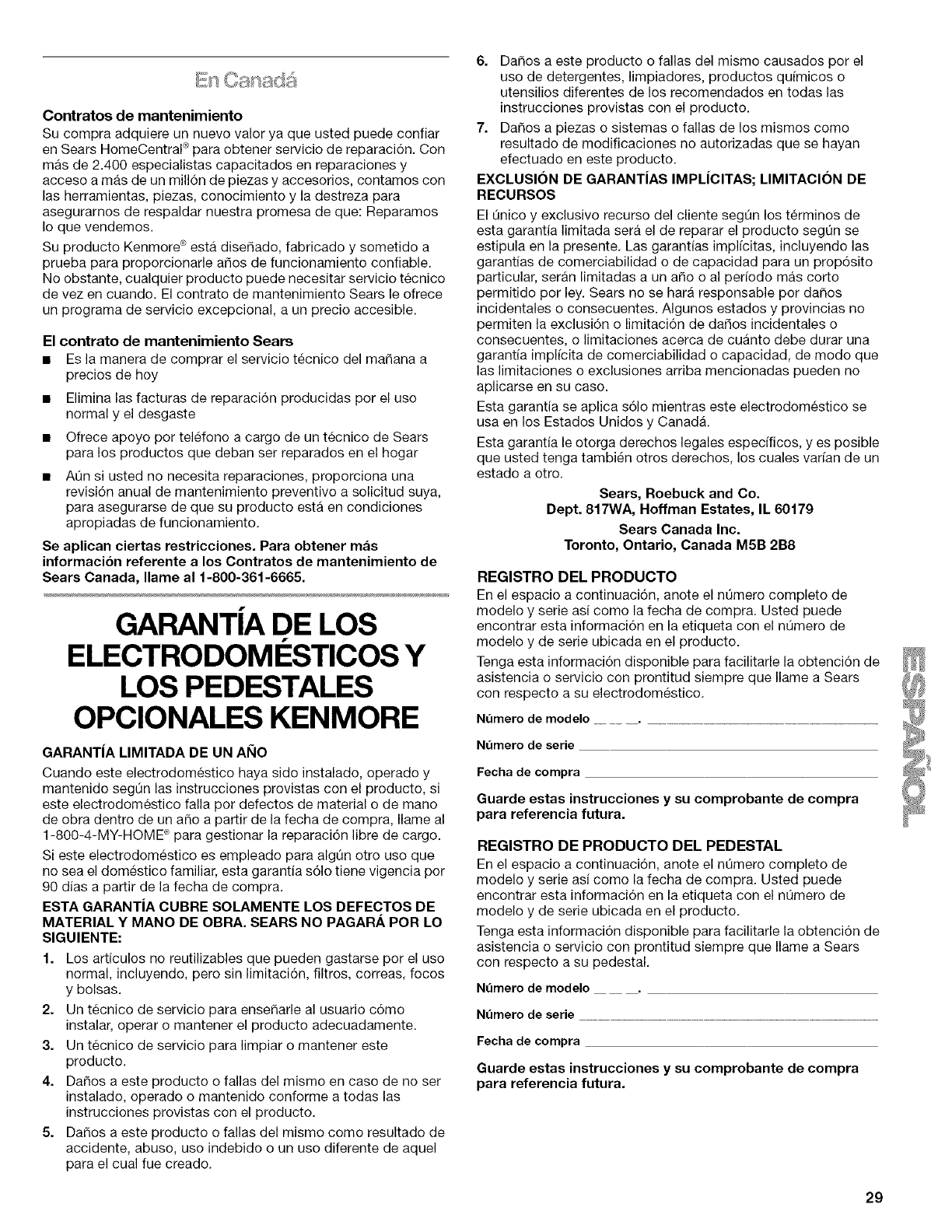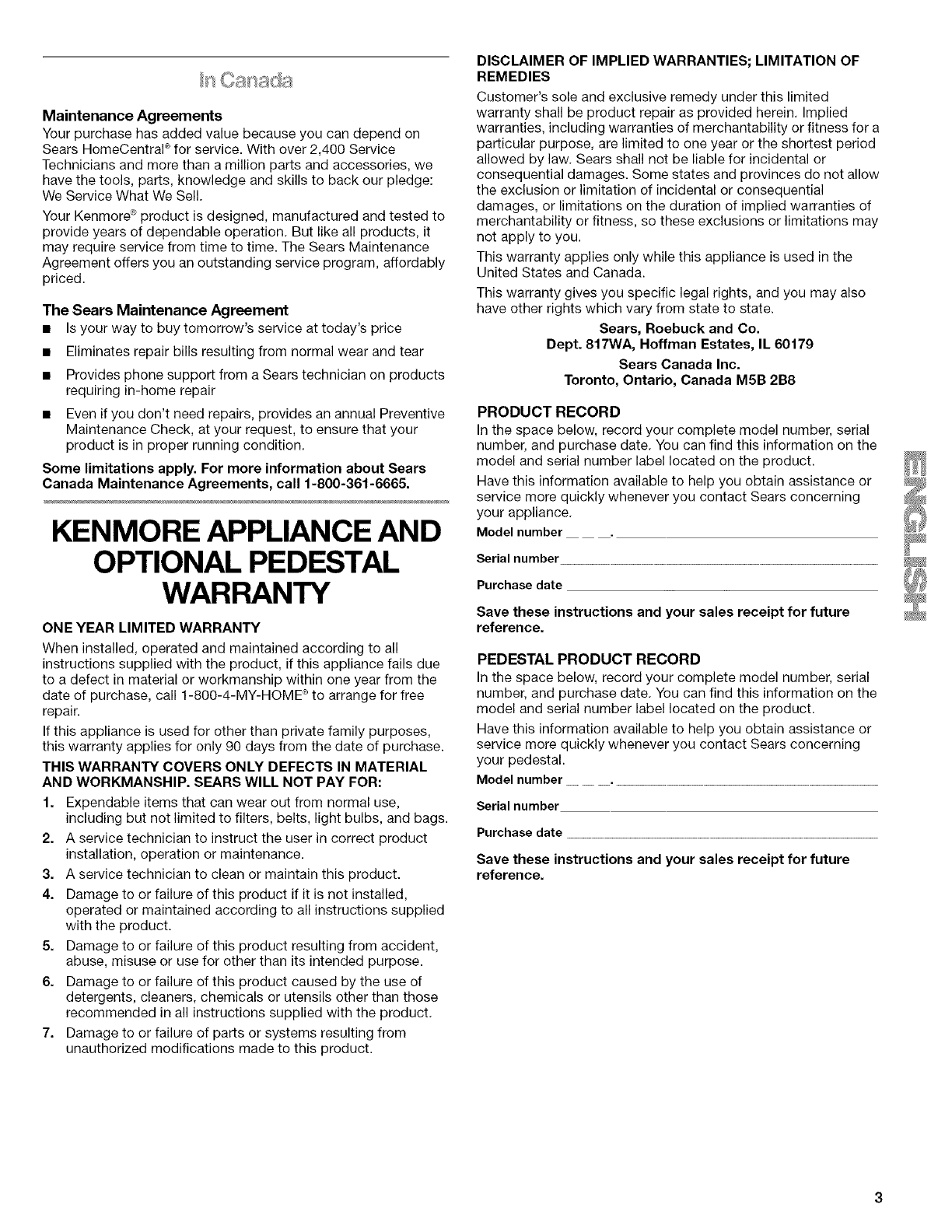 or maintenance agreement (Canada) on a product serviced by Sears: