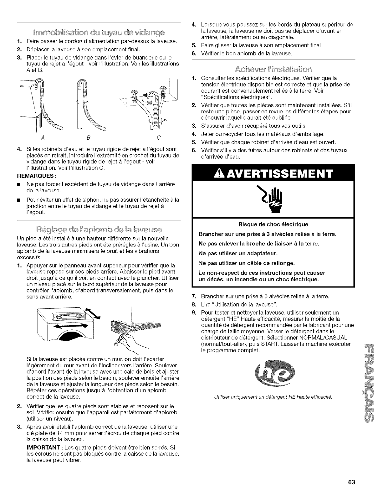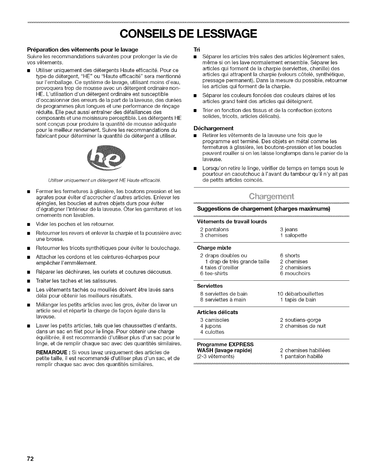 La charge de lavage dolt _tre equilibree et pas surchargee.