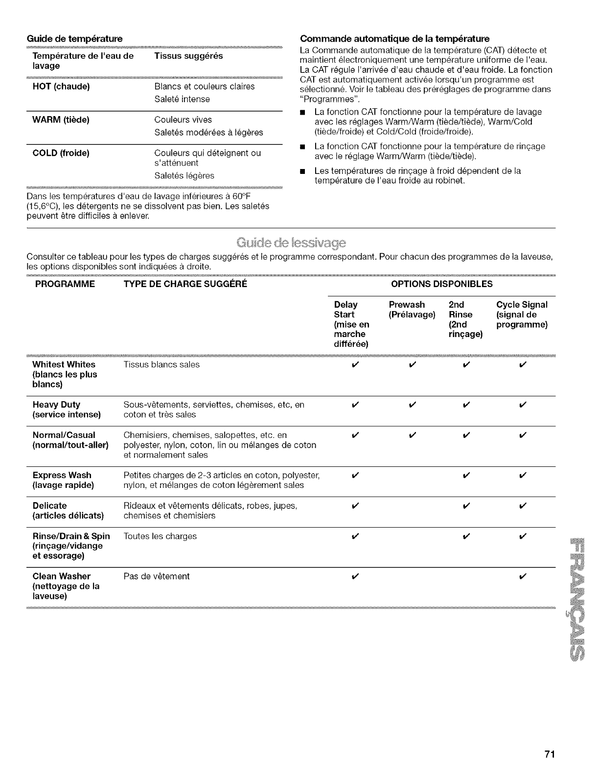 Une eau de lavage plus froide que 60°F (15,6°C) peut ne pas