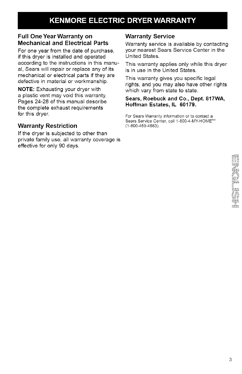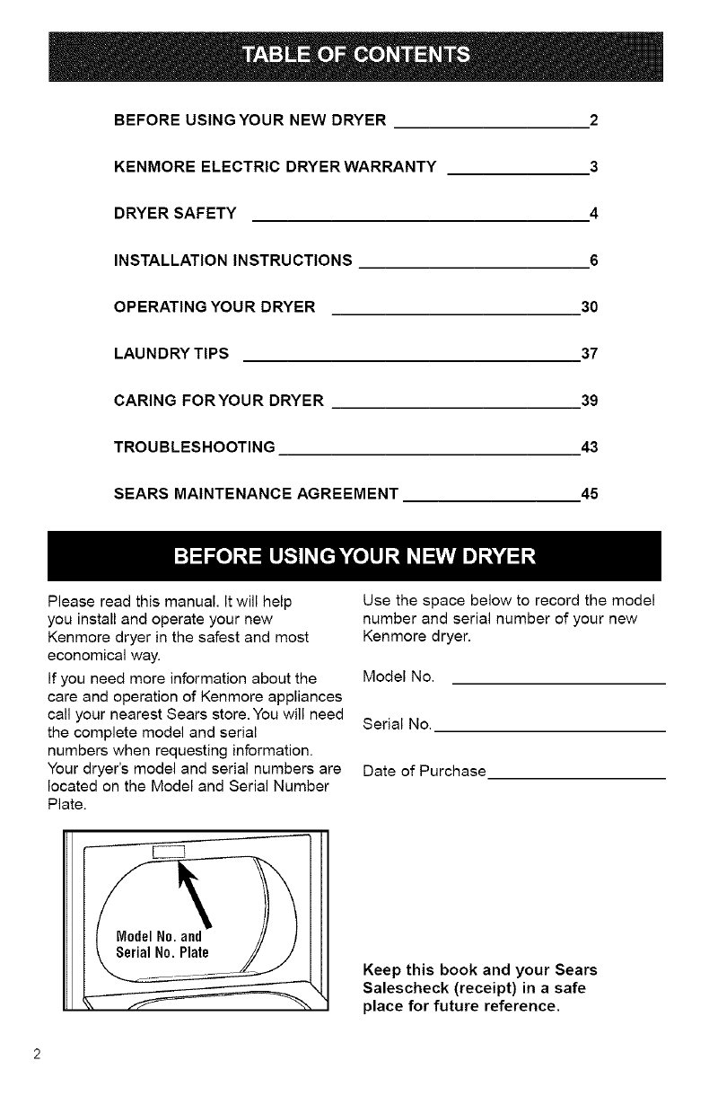 Kenmore 11060902990 User Manual ELECTRIC DRYER Manuals And Guides L0708185