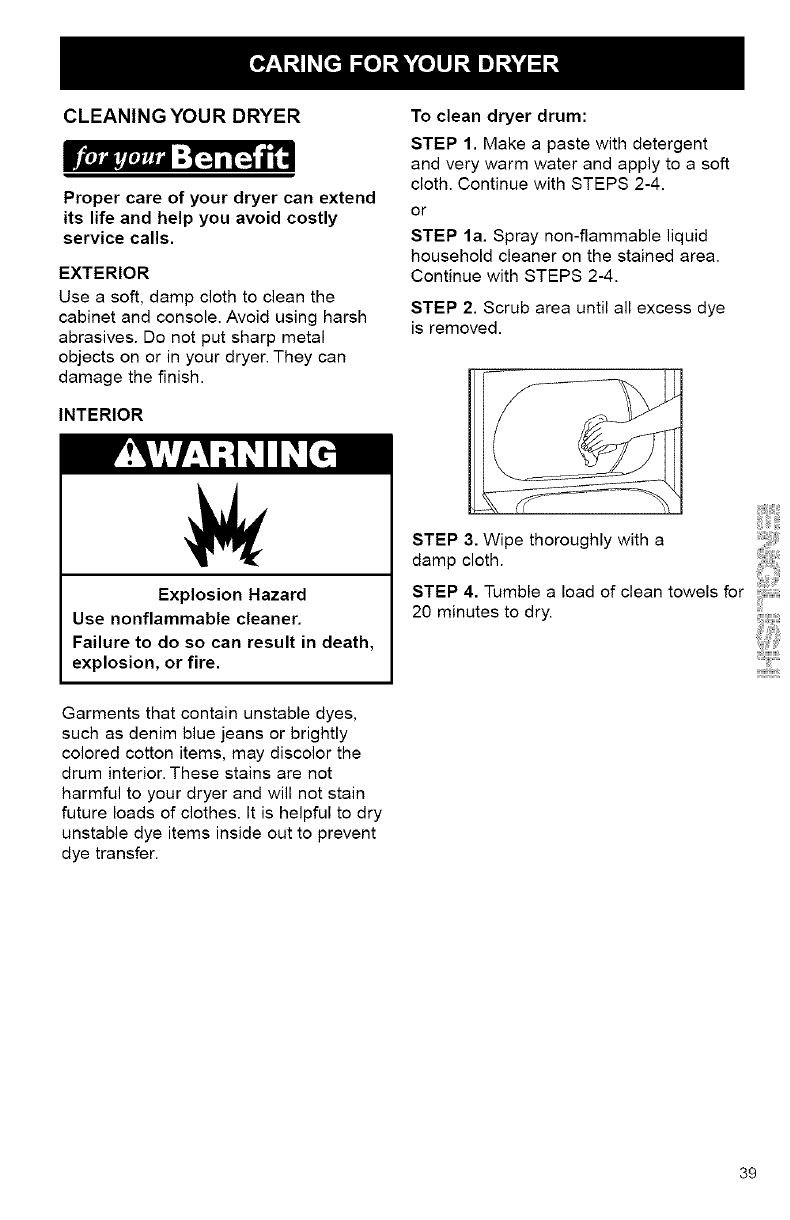 Odors Household chemicals, paint, Do not use dryer while these chemical