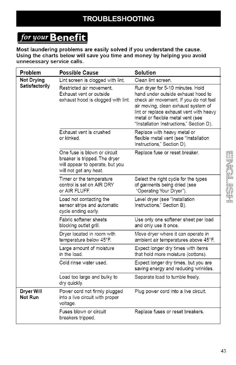 Dryer Will Using a regular fuse. Replace with a time-delay fuse.