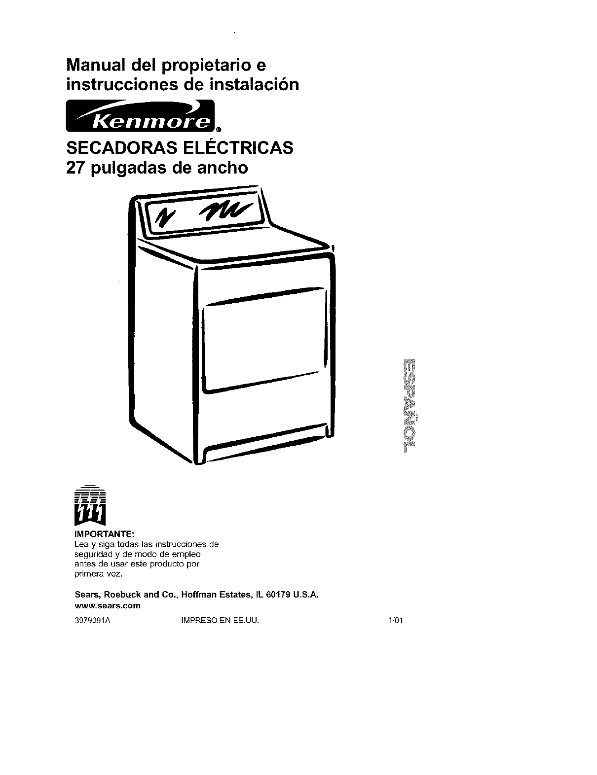 KENMORE Residential Dryer Manual L0309533 KENMORE Residential Dryer Owner's Manual, KENMORE Residential Dryer installation guides