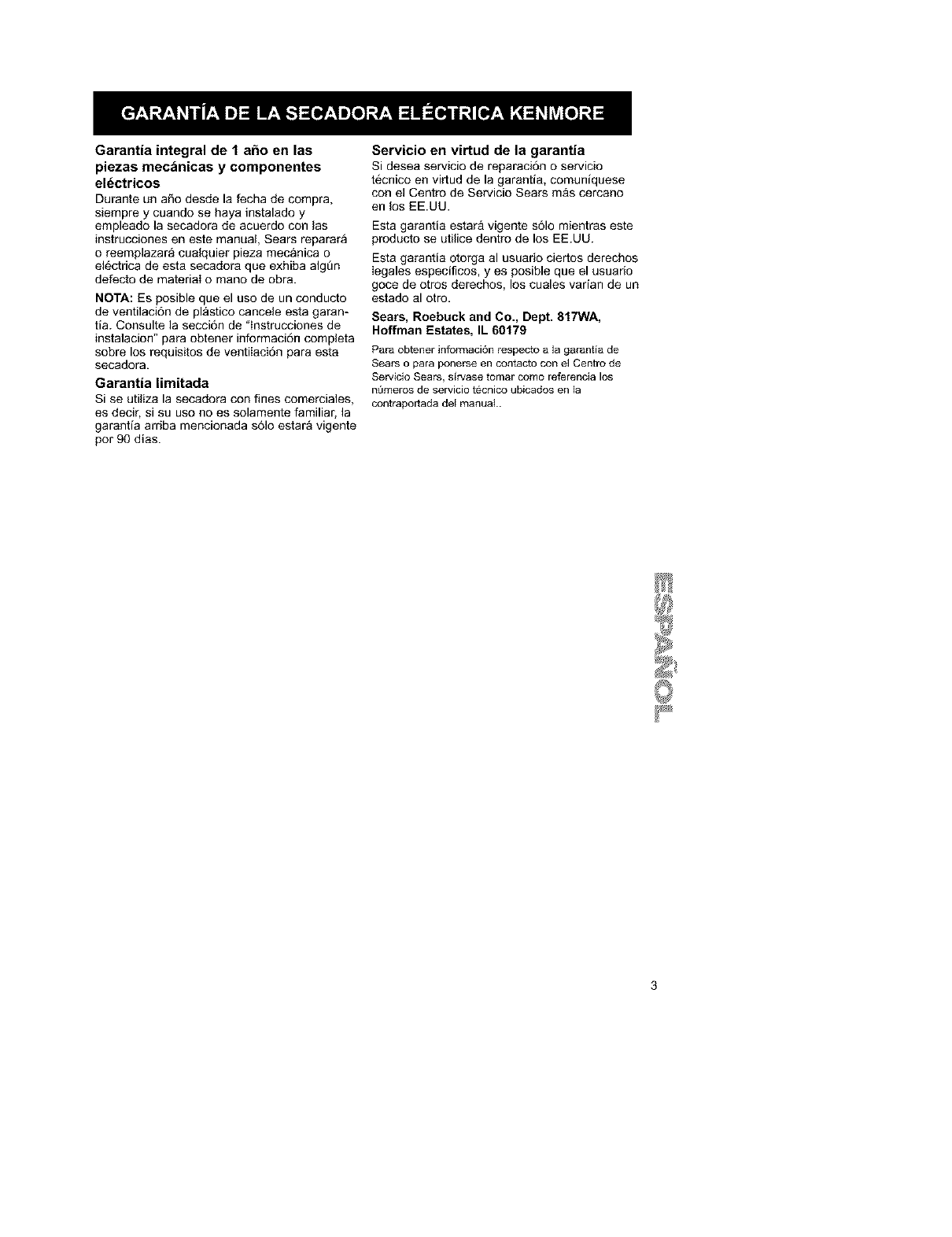 KENMORE ELECTRIC DRYER WARRANTY 3