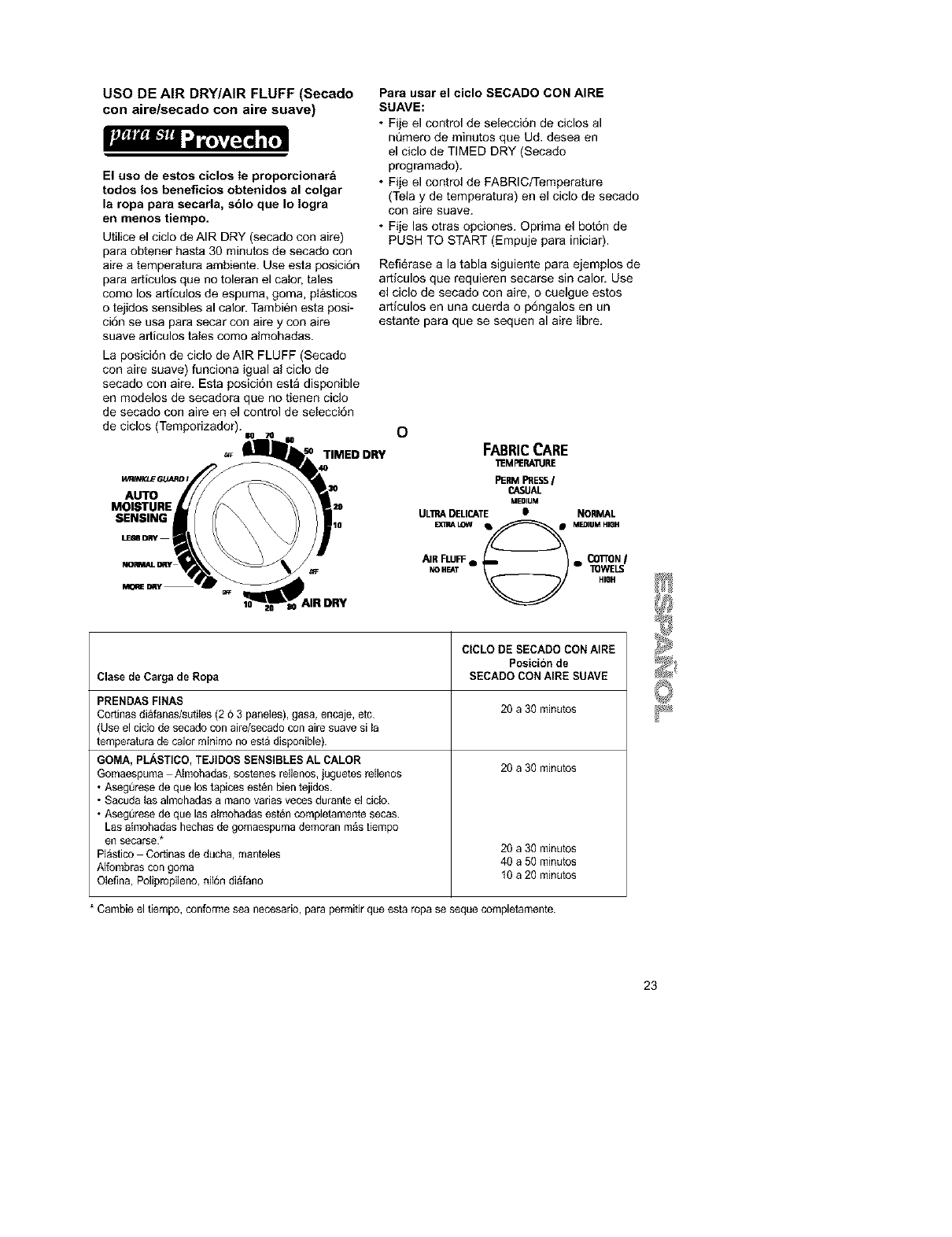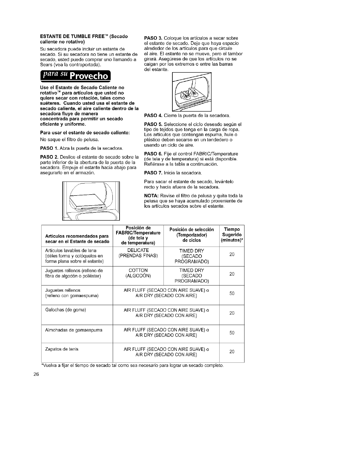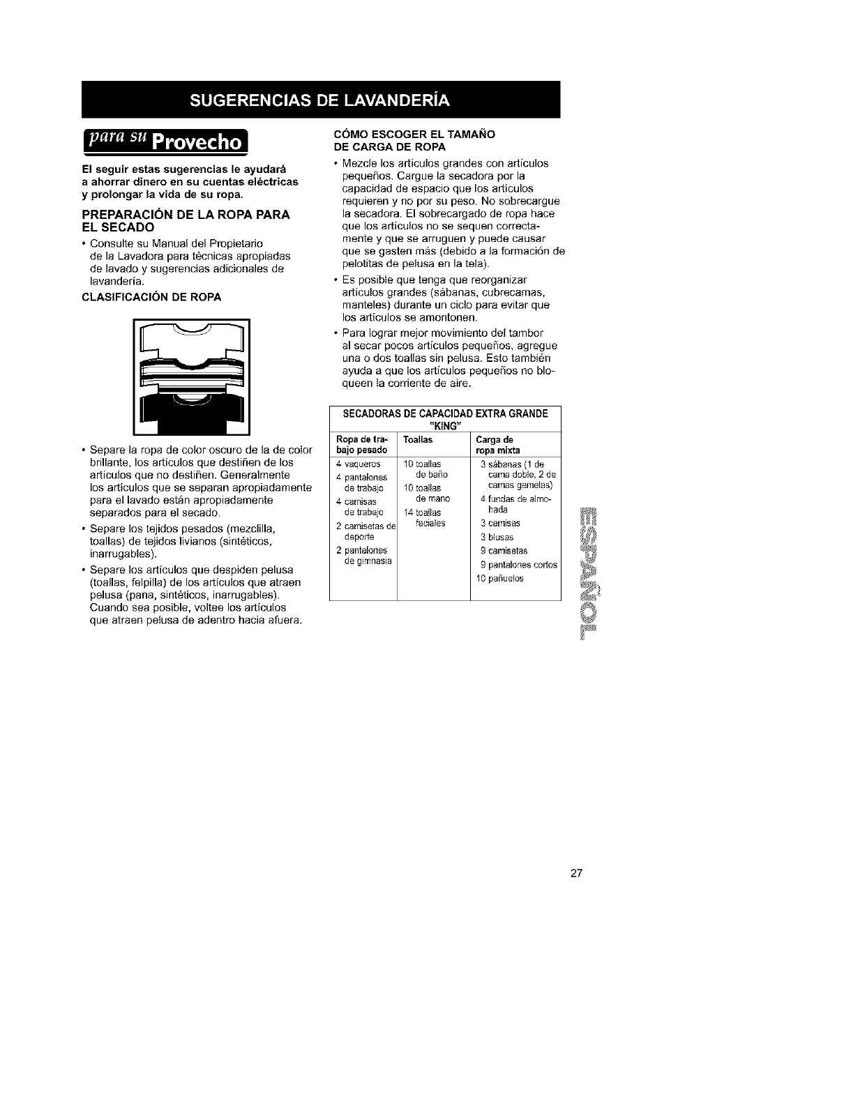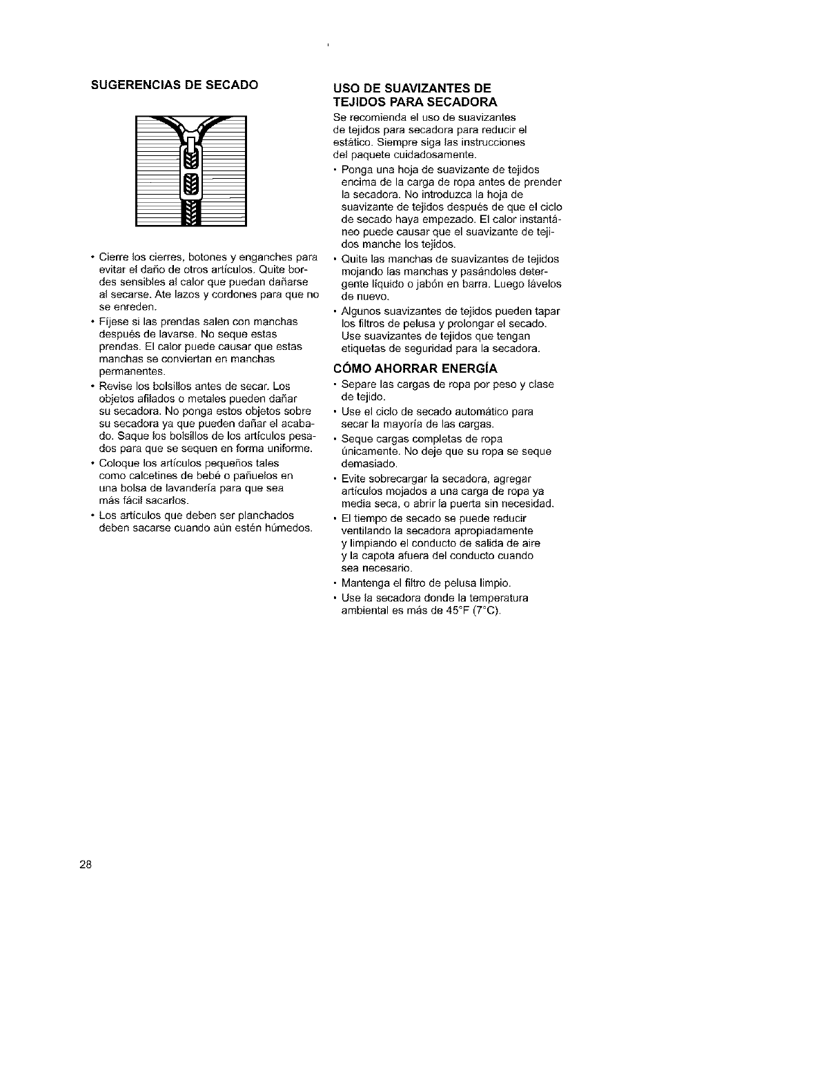 de articulos prolongados, secadora coincida con la clase de tejido.