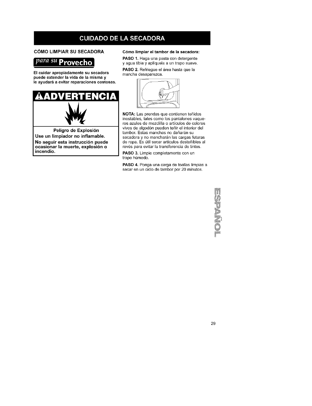 Ha secado art{culos manchados. Es necesabo limpiar los articuios antes de