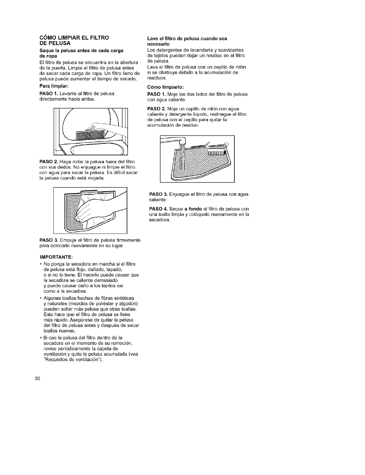 Pelusa en la El filtro de pelusa esta tapado. Limpie e( filtro de pelusa. Compruebe si