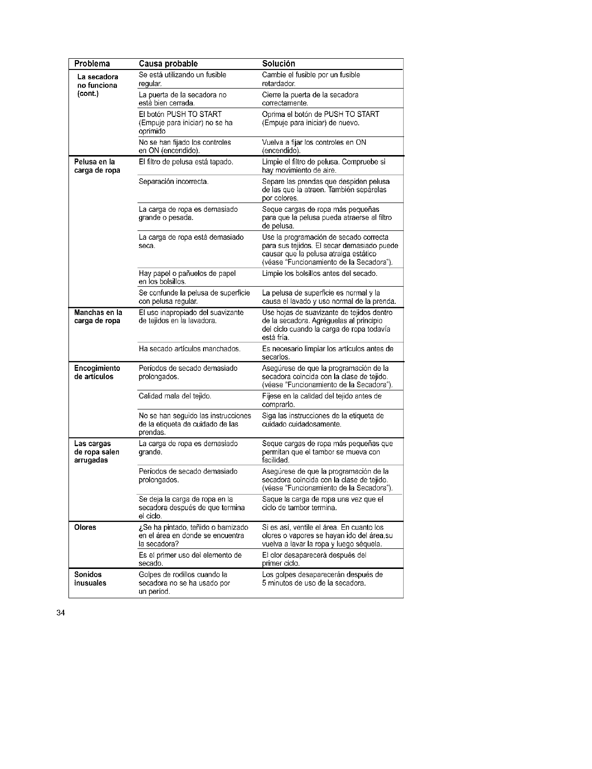 (cont.) La puerta de la secadora no Cierre la puerta de (asecadora