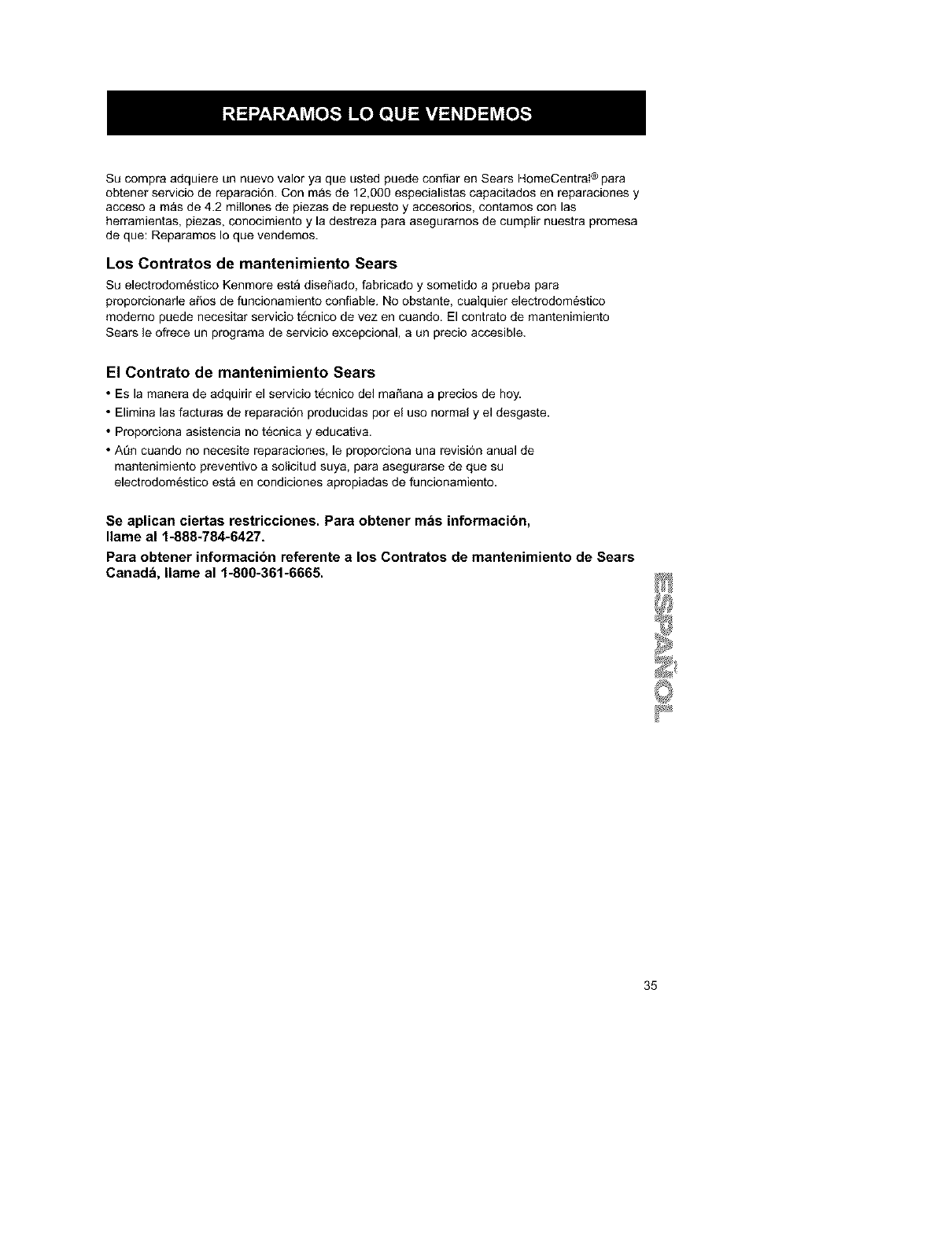 Su electrodom_stico Kenmore esta dise_ado, fabricado y sometido a prueba para