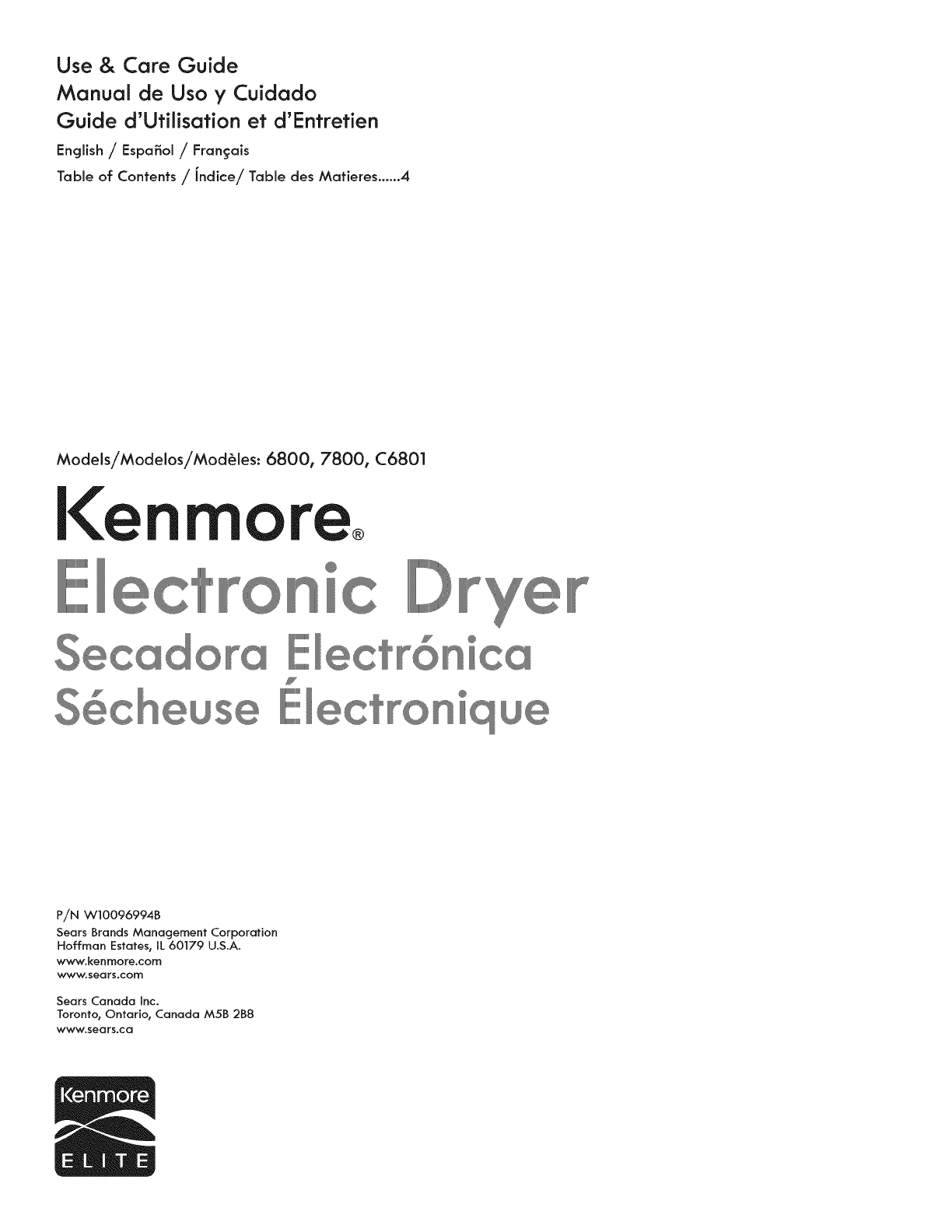 Kenmore 11068002010 1105251L User Manual ELECTRIC DRYER Manuals And Guides