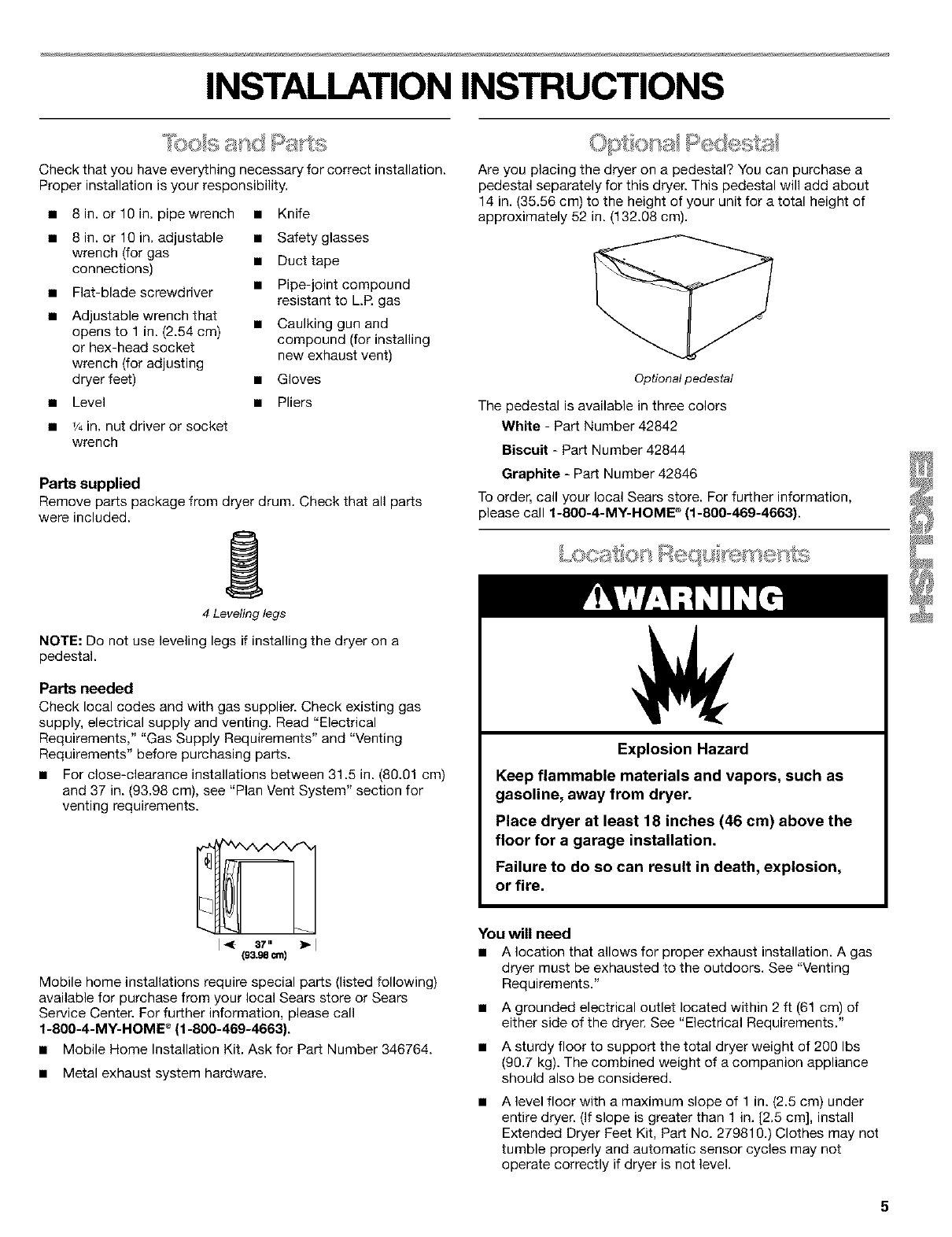 Kenmore 11092822101 User Manual GAS DRYER Manuals And Guides L0401356