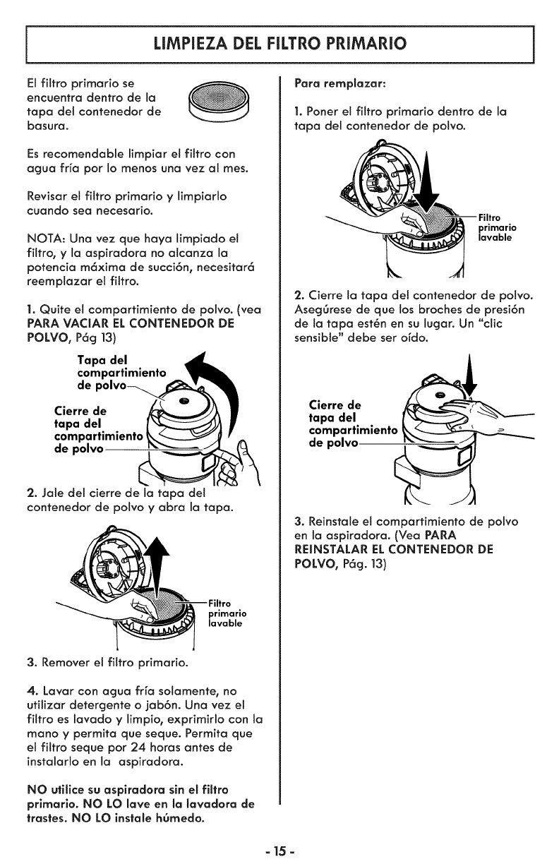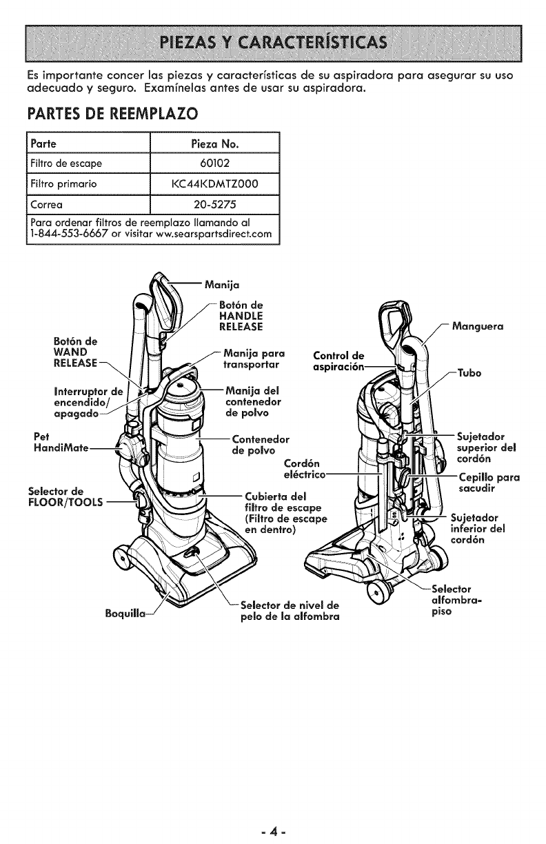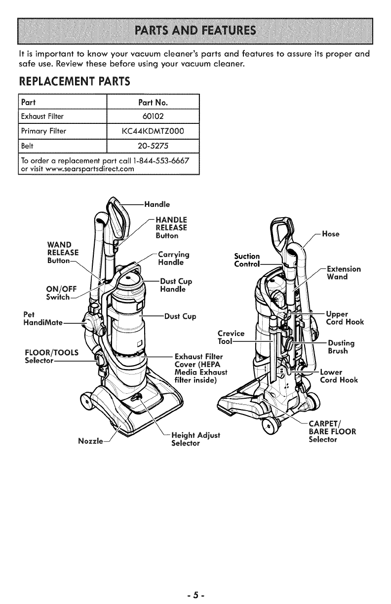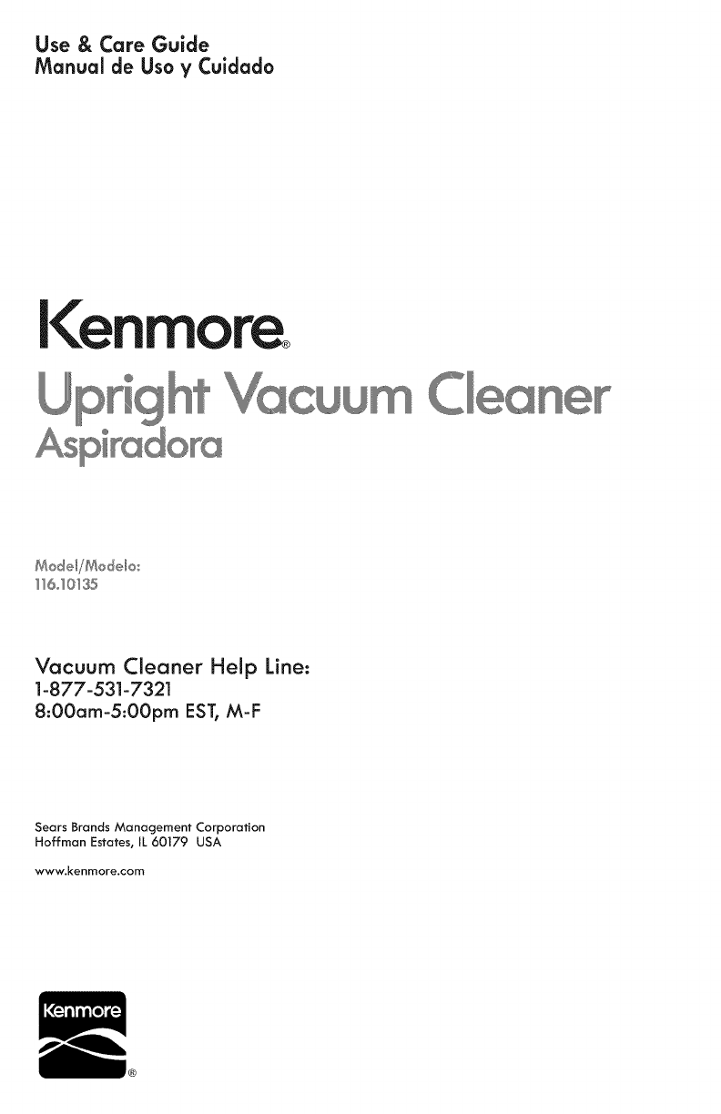 Kenmore 11610135510 User Manual VACUUM Manuals And Guides 1506249L