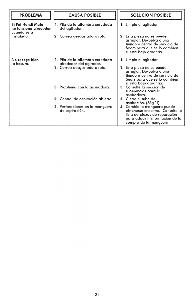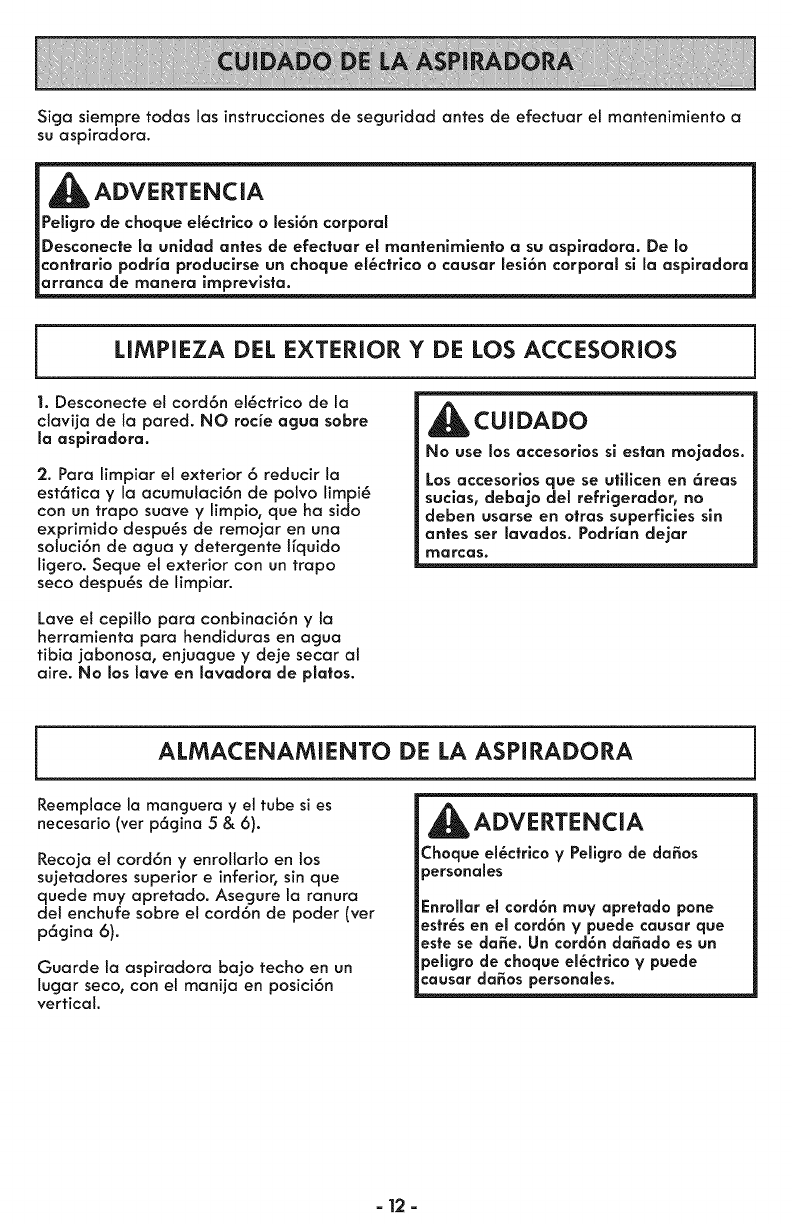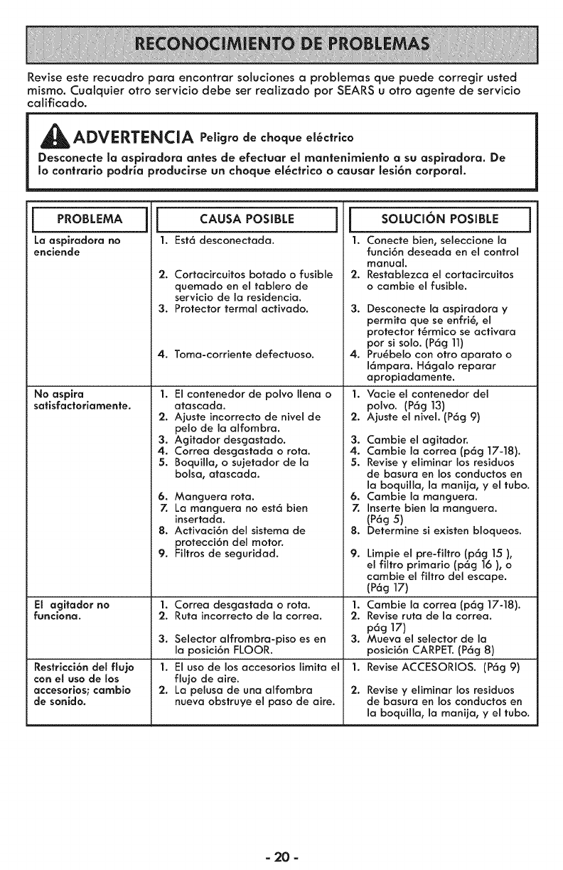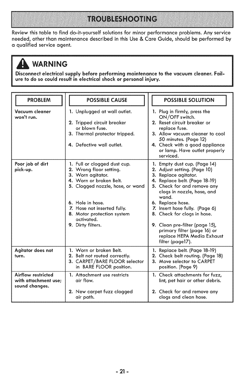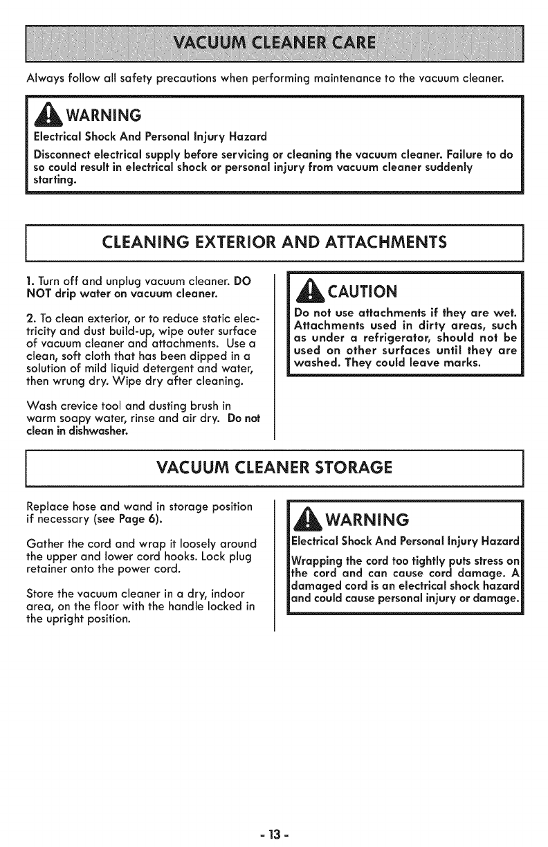 Vacuum Cleaner Care ............................................................................................................. 13-20