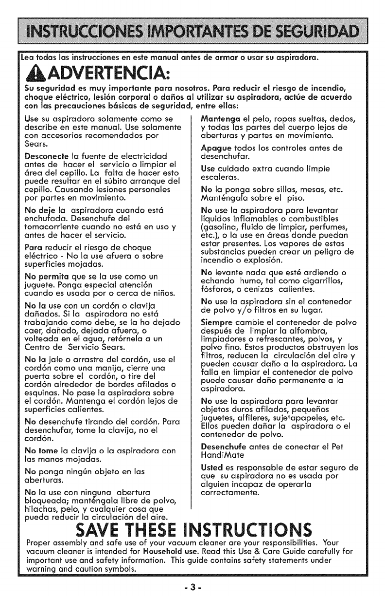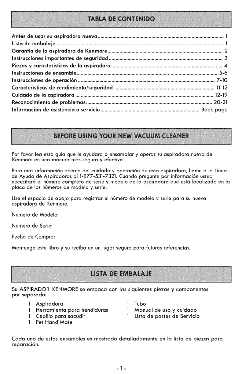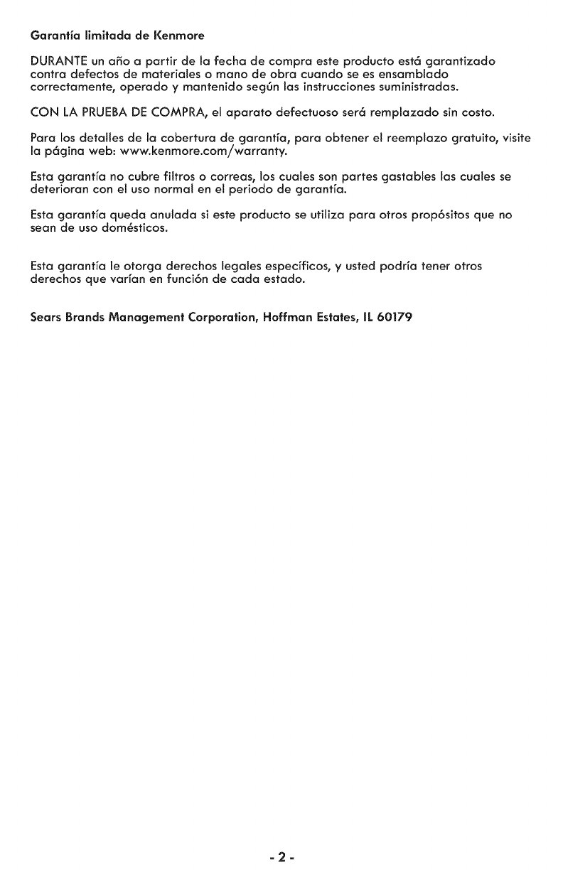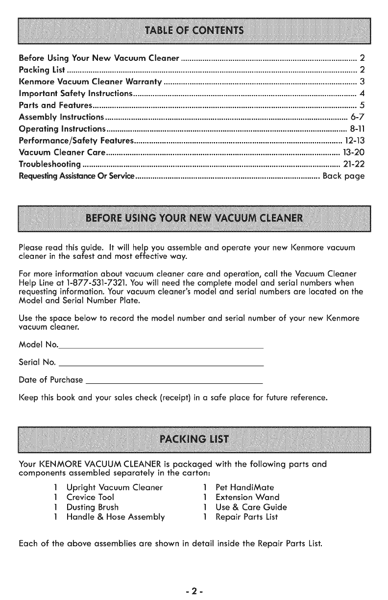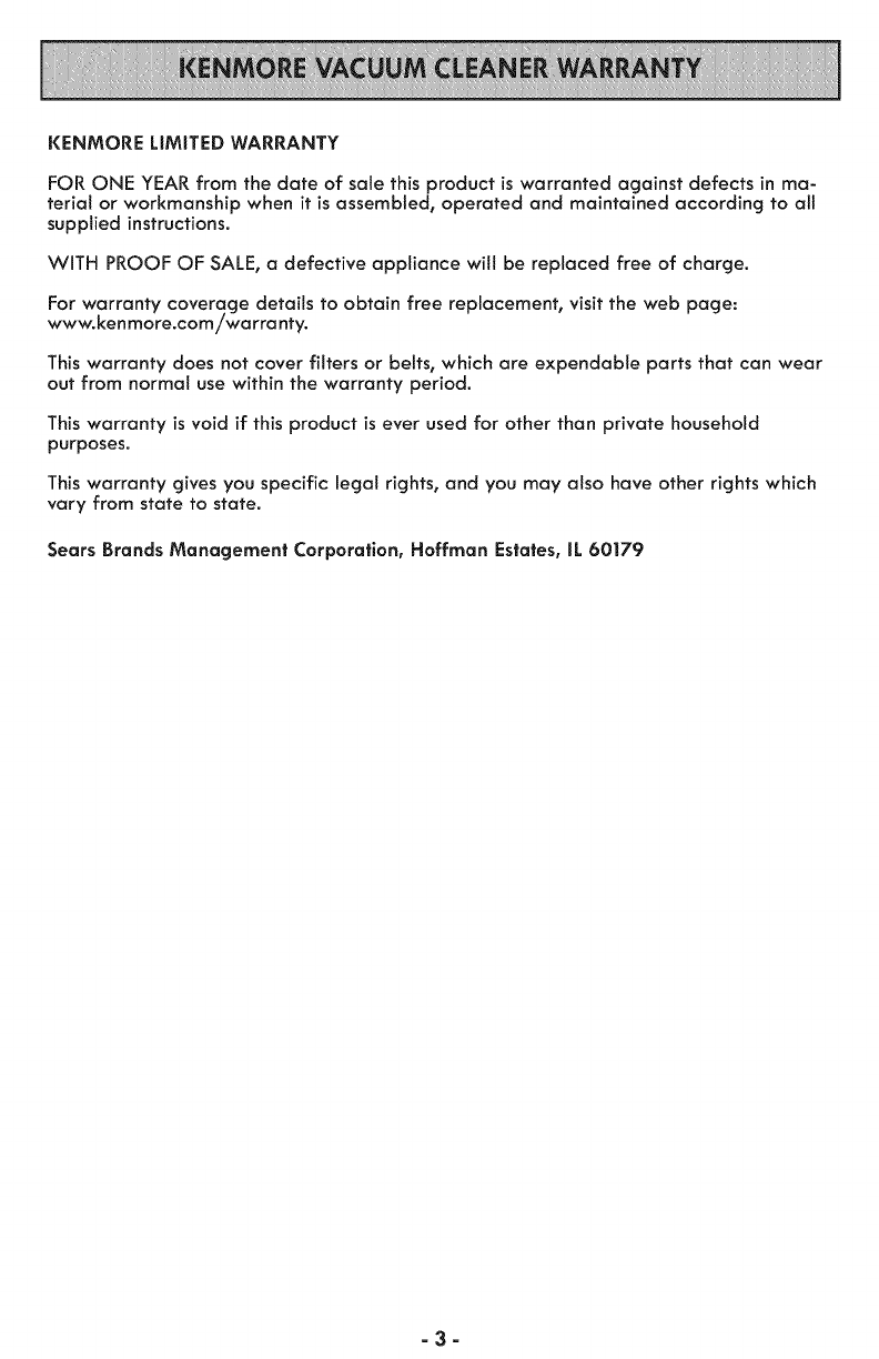 Kenmore Vacuum Cleaner Warranty .......................................................................................... 3