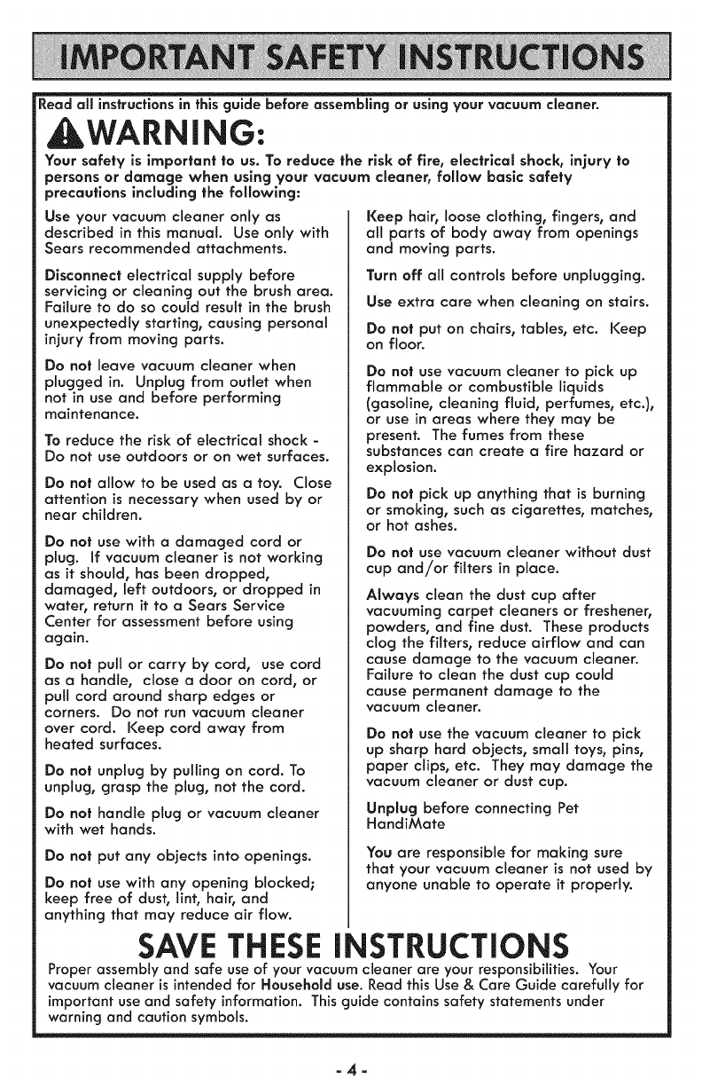 Please read this guide. It will help you assemble and operate your new I<enmore vacuum