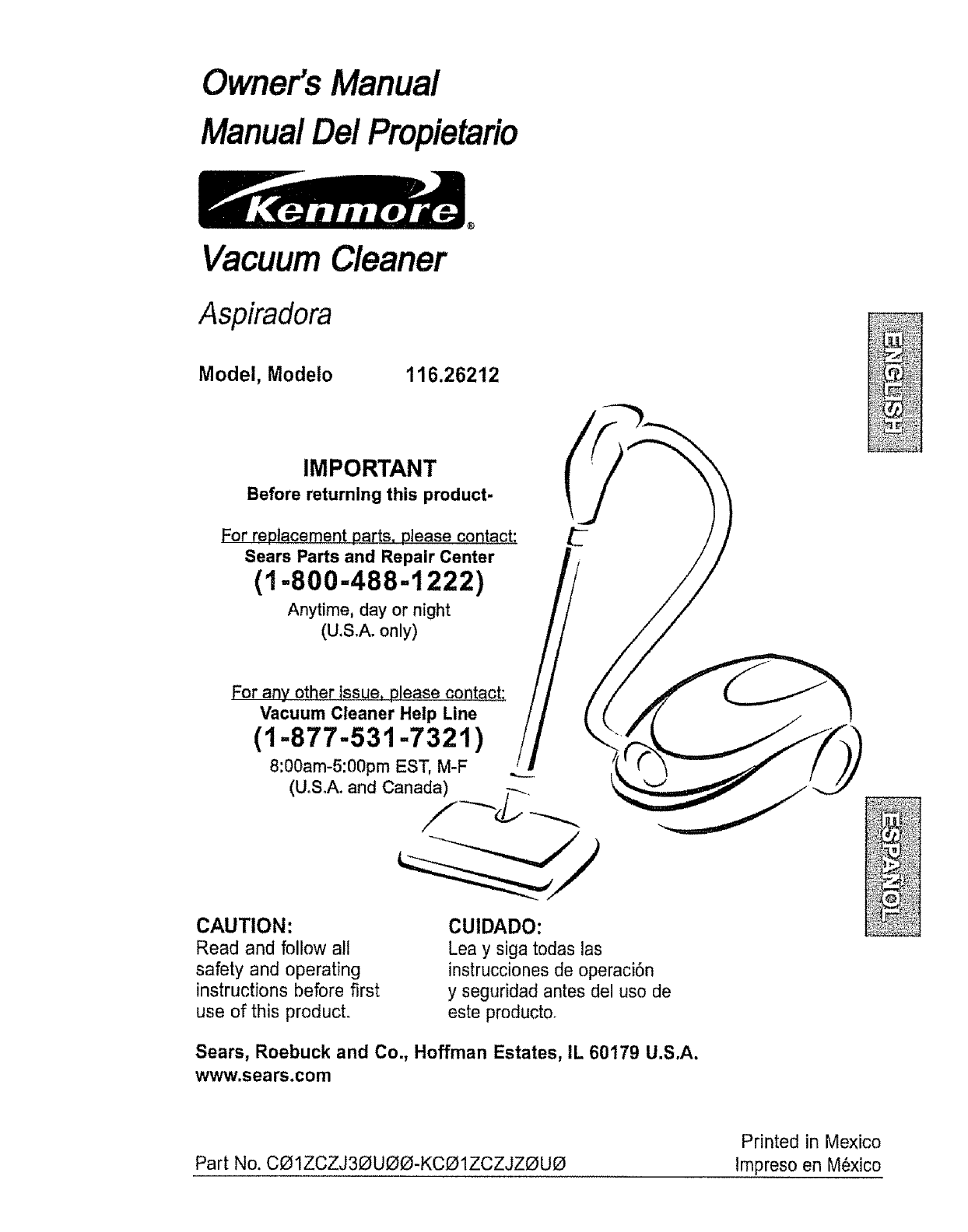 User Manual: Kenmore 11626212602 11626212602 KENMORE CANISTER VAC - Manuals and Guides View the owners manual for your KENMORE CANISTER VAC #11626212602. Home:Vacuums & Floor Care Parts:Kenmore Parts:Kenmore CANISTER VAC Manual
